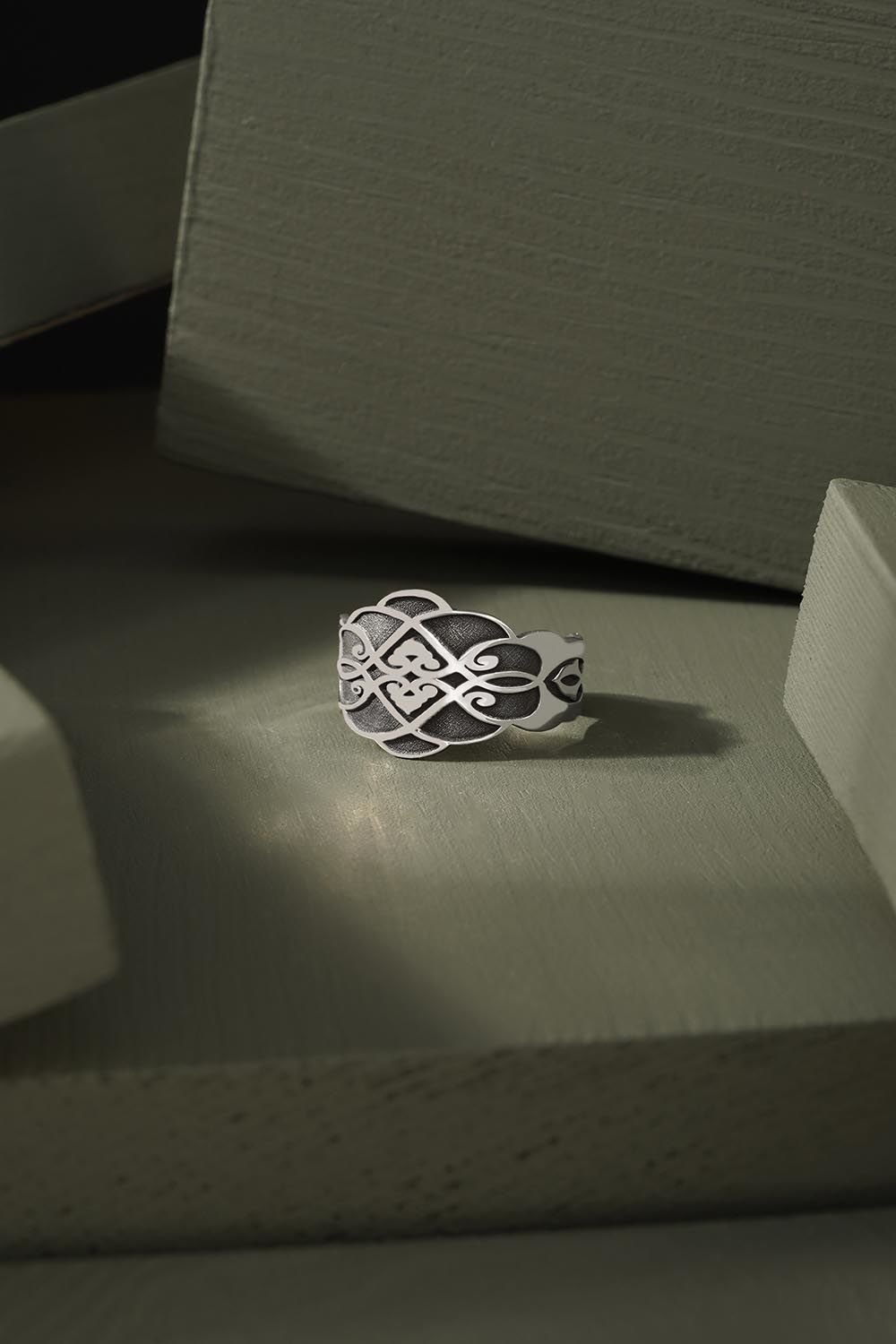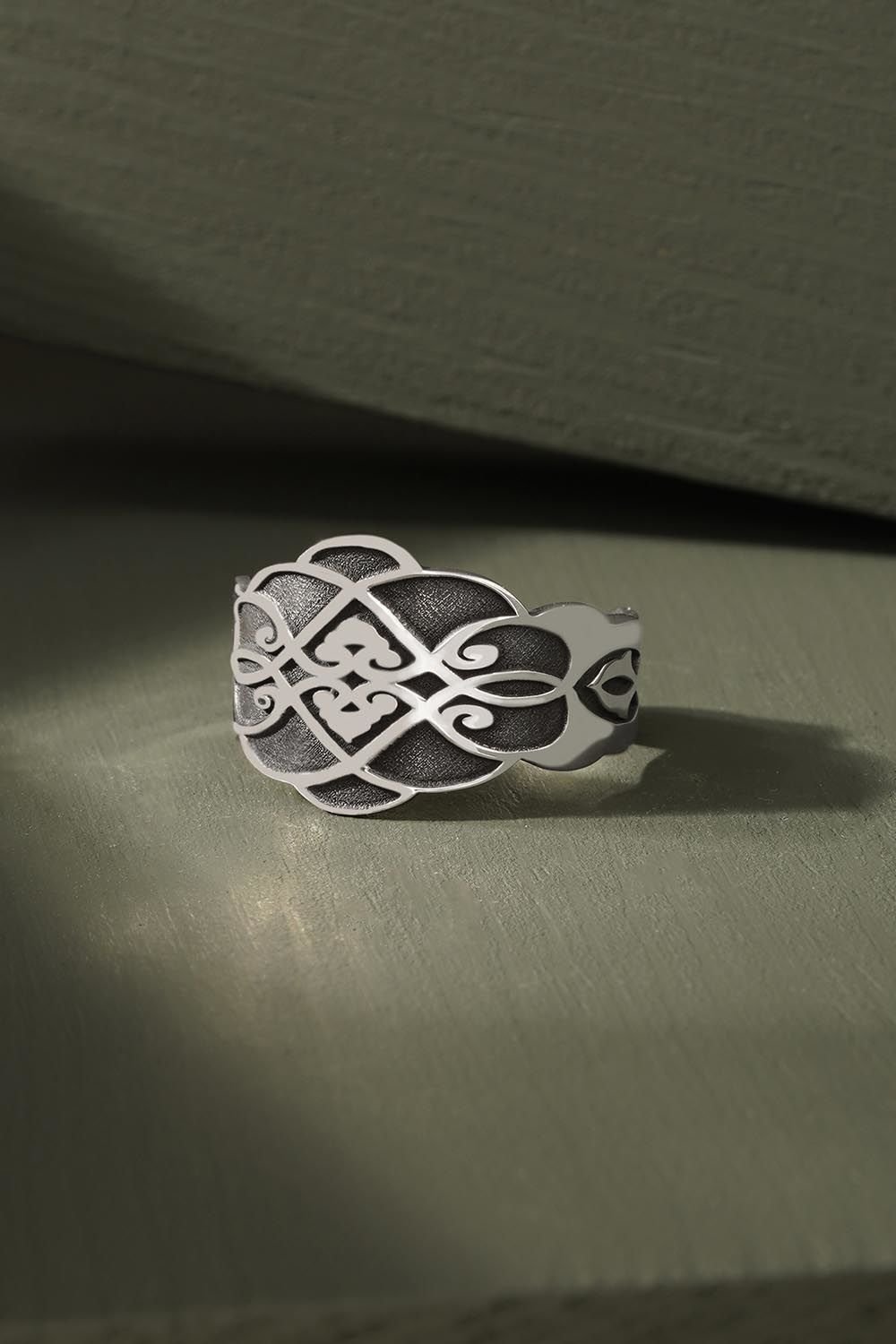 Selçuklu Desenli Ayarlanabilir Gümüş Yüzük