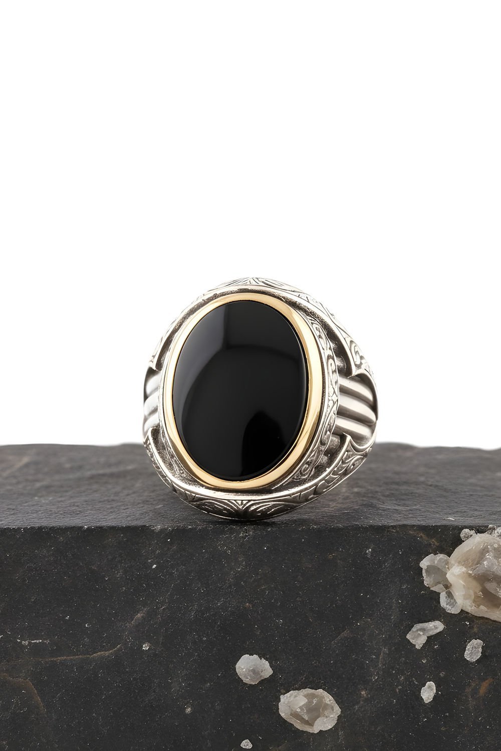 Oniks Taşlı Oval Model Gümüş Yüzük |