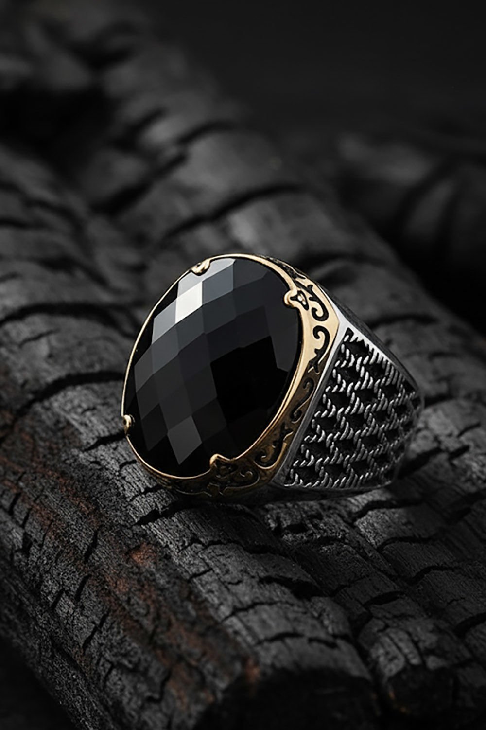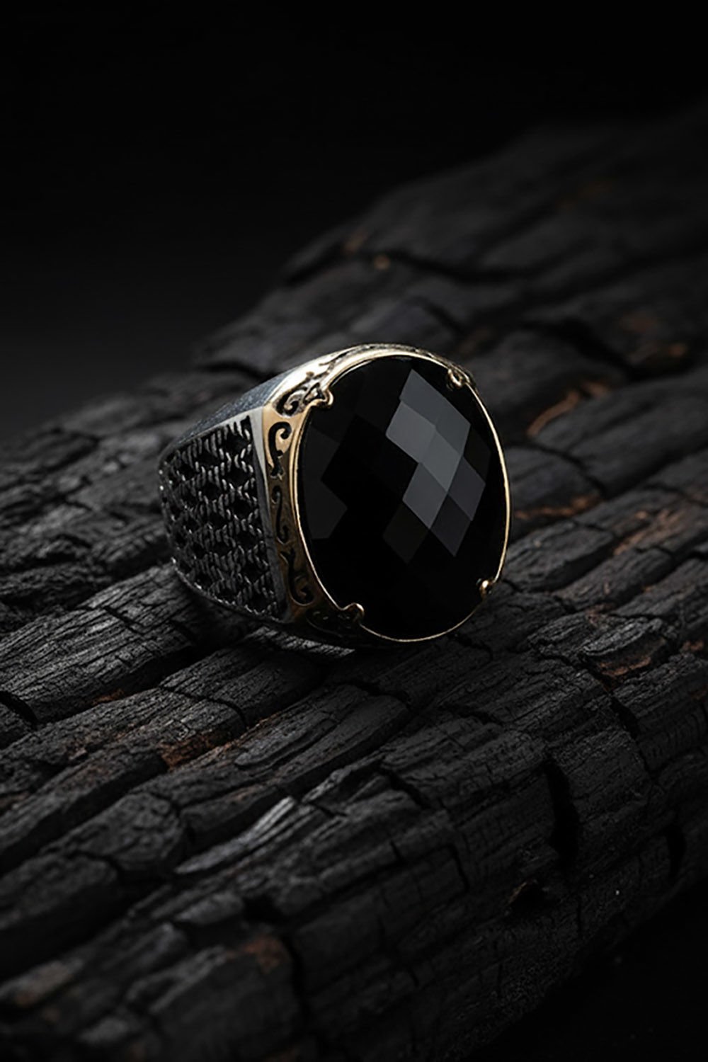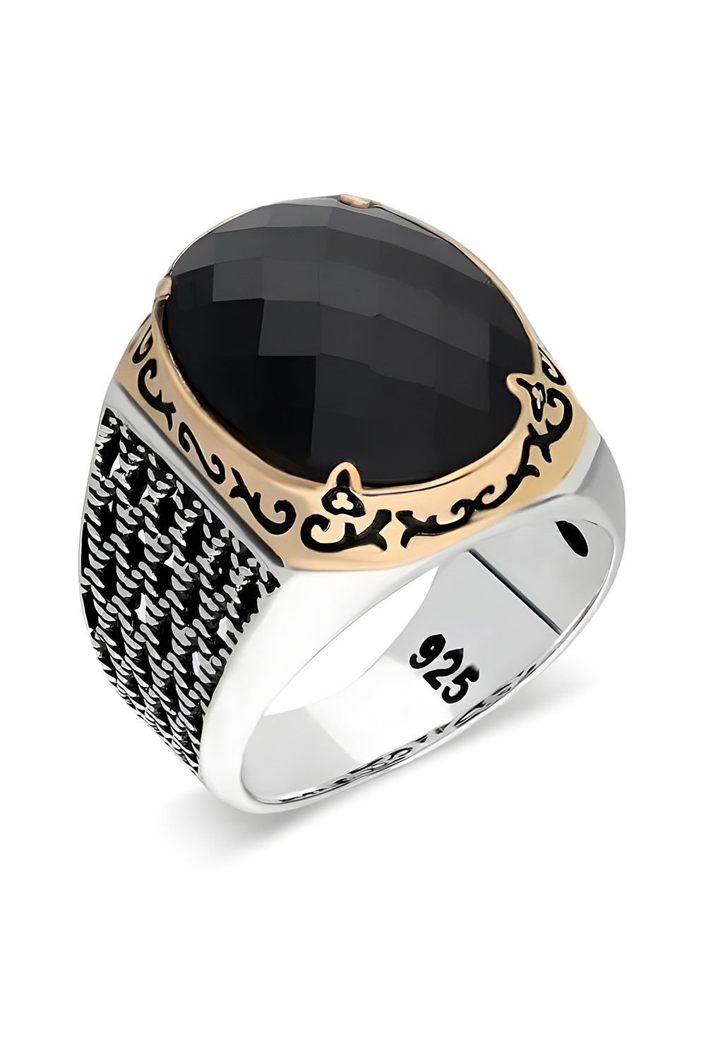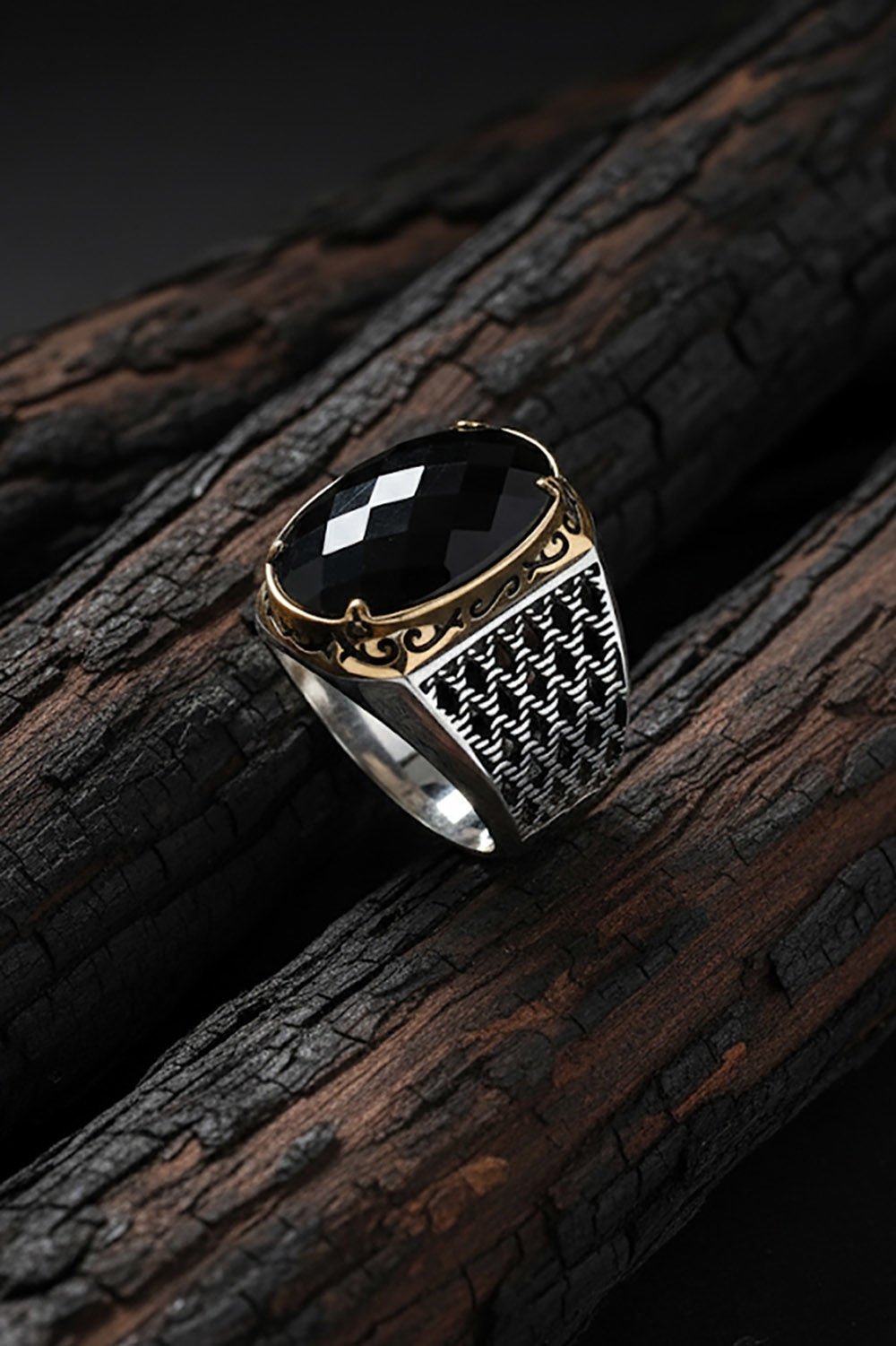 Bu özel erkek yüzüğü, doğal siyah zirkon taşı ve 925 ayar gümüş ile özenle tasarlanmıştır. El işçiliği ve özel tasarım detaylarıyla dikkat çekici bir parçadır.