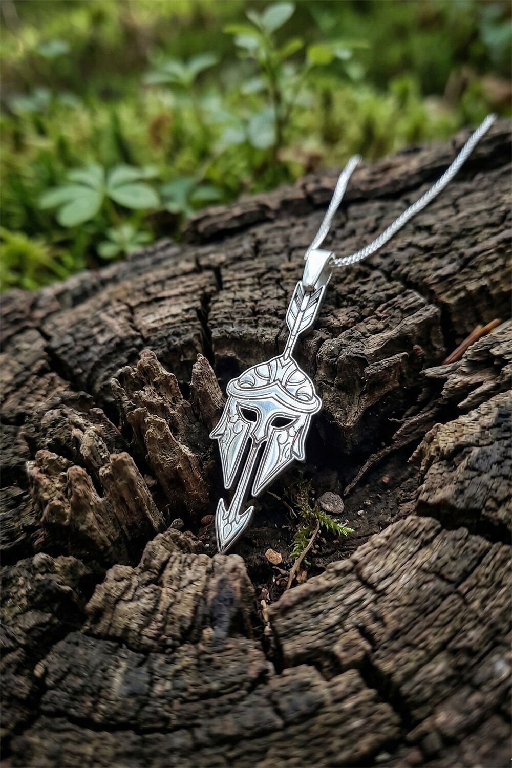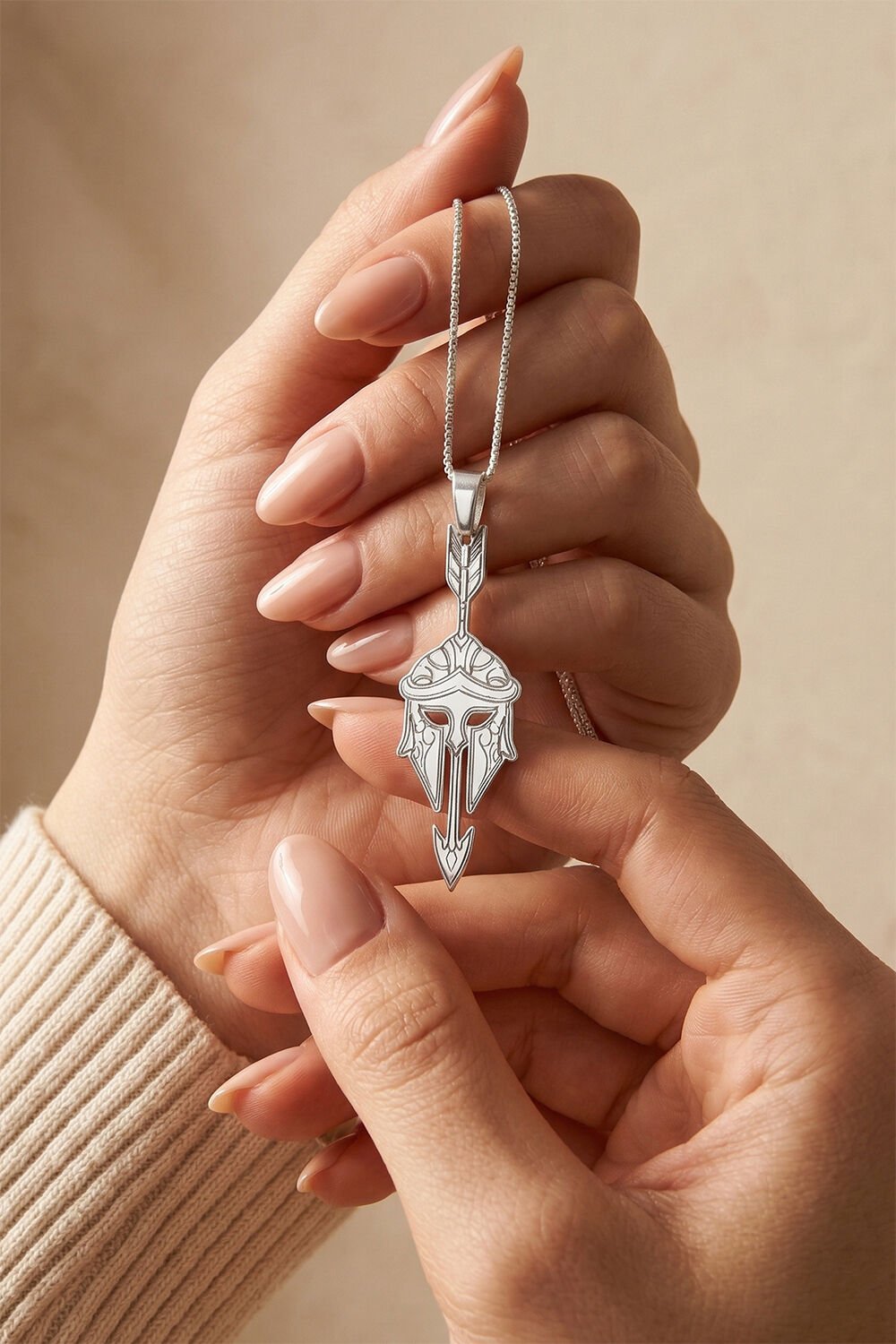Sparta Miğferi ve Ok Detaylı 925 Ayar Gümüş Kolye – Savaşçı Ruhu