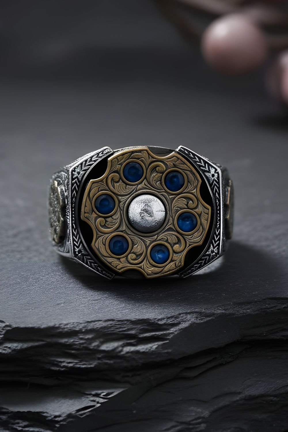 Gümüş Taşlı Erkek Yüzük |