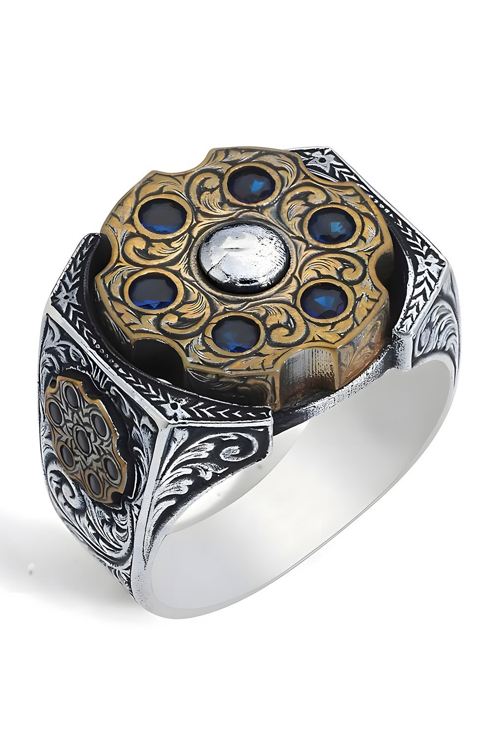 Stres Çarkı Model Safir Renk Zirkon Taşlı Gümüş Yüzük |
