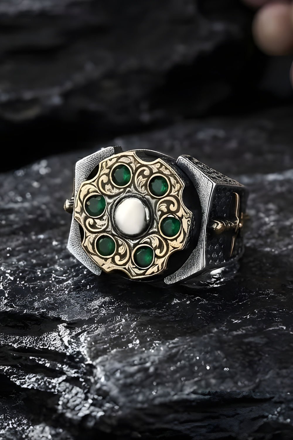 Stres Çarkı Model Yeşil Zirkon Taşlı Gümüş Yüzük |