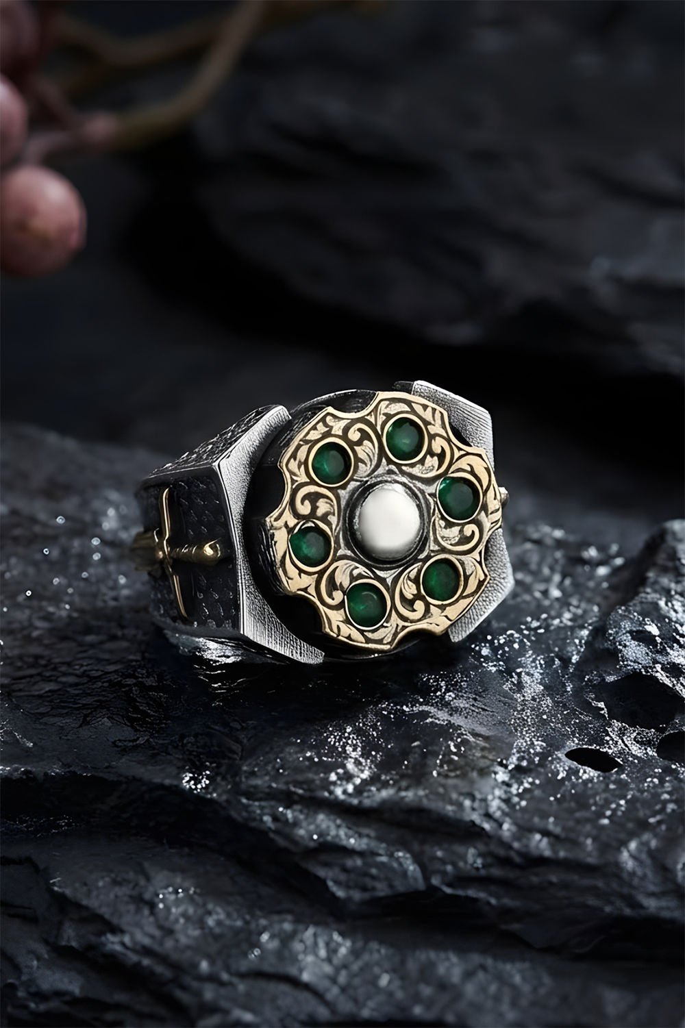 Gümüş Taşlı Erkek Yüzük |
