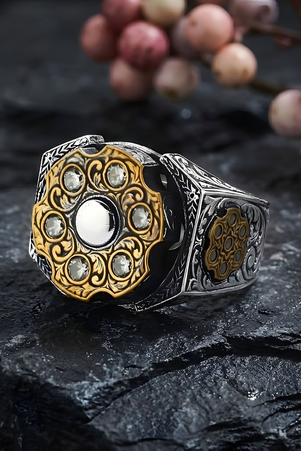 Sadece bir aksesuar değil, aynı zamanda günün stresinden uzaklaşmanızı sağlayacak bir oyun arkadaşı! Stres Çarkı Model Gümüş Erkek Yüzük, modern tasarımı ve dönebilen mekanizmasıyla takı dünyasına yenilikçi bir dokunuş katıyor. 925 ayar gümüş kalitesiyle birleşen zirkon taşlar, bu yüzüğü hem şık bir takı hem de fonksiyonel bir stres giderici haline getiriyor.