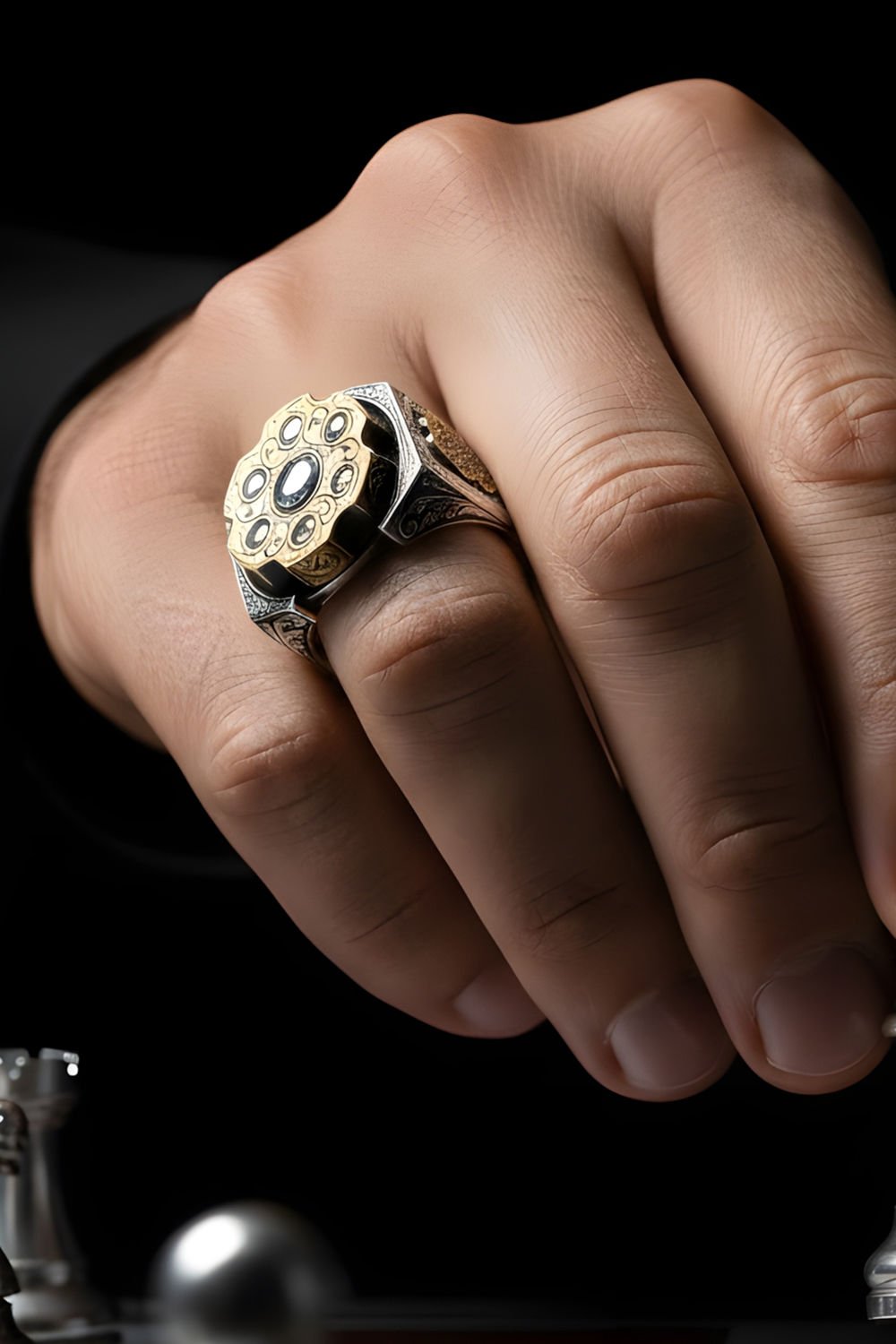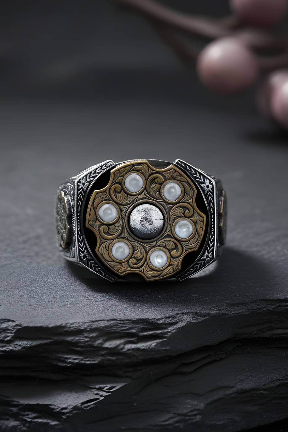 Göz Alıcı Zirkon Taşlar: Hassas bir işçilikle yüzüğe mıhlanan yüksek kaliteli Zirkon taşlar, pırlanta ışıltısını parmağınıza taşır. Siyah ve metalik gri uyumuyla modern bir estetik sunar.