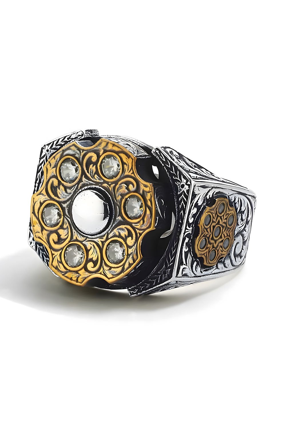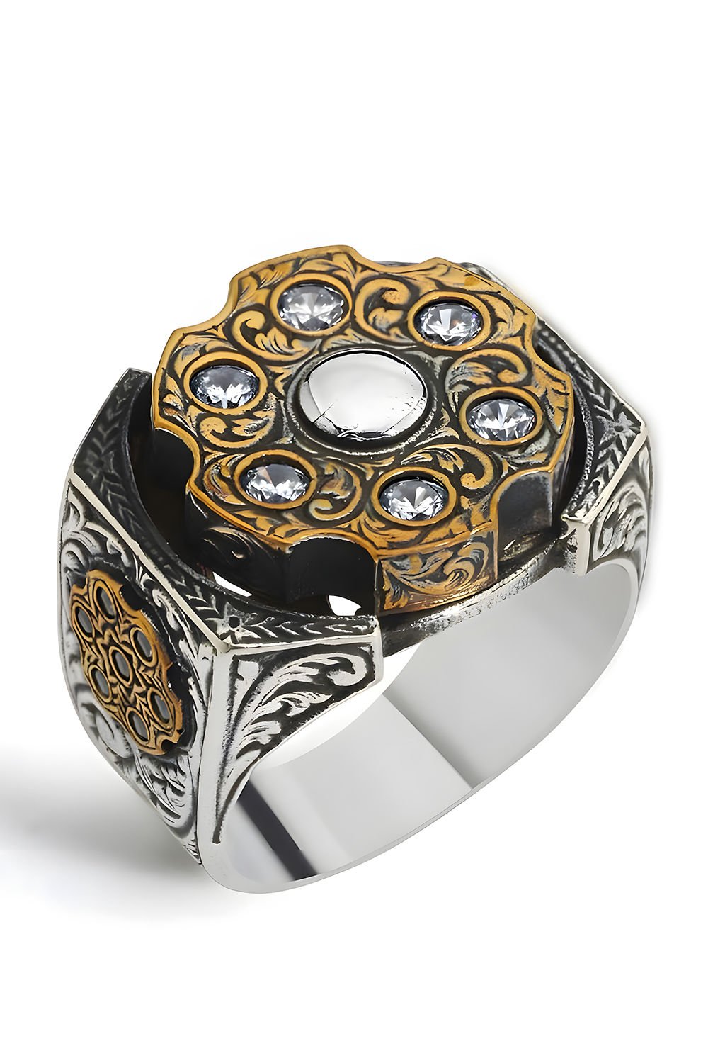Stres Çarkı Model Zirkon Taşlı Gümüş Erkek Yüzük |