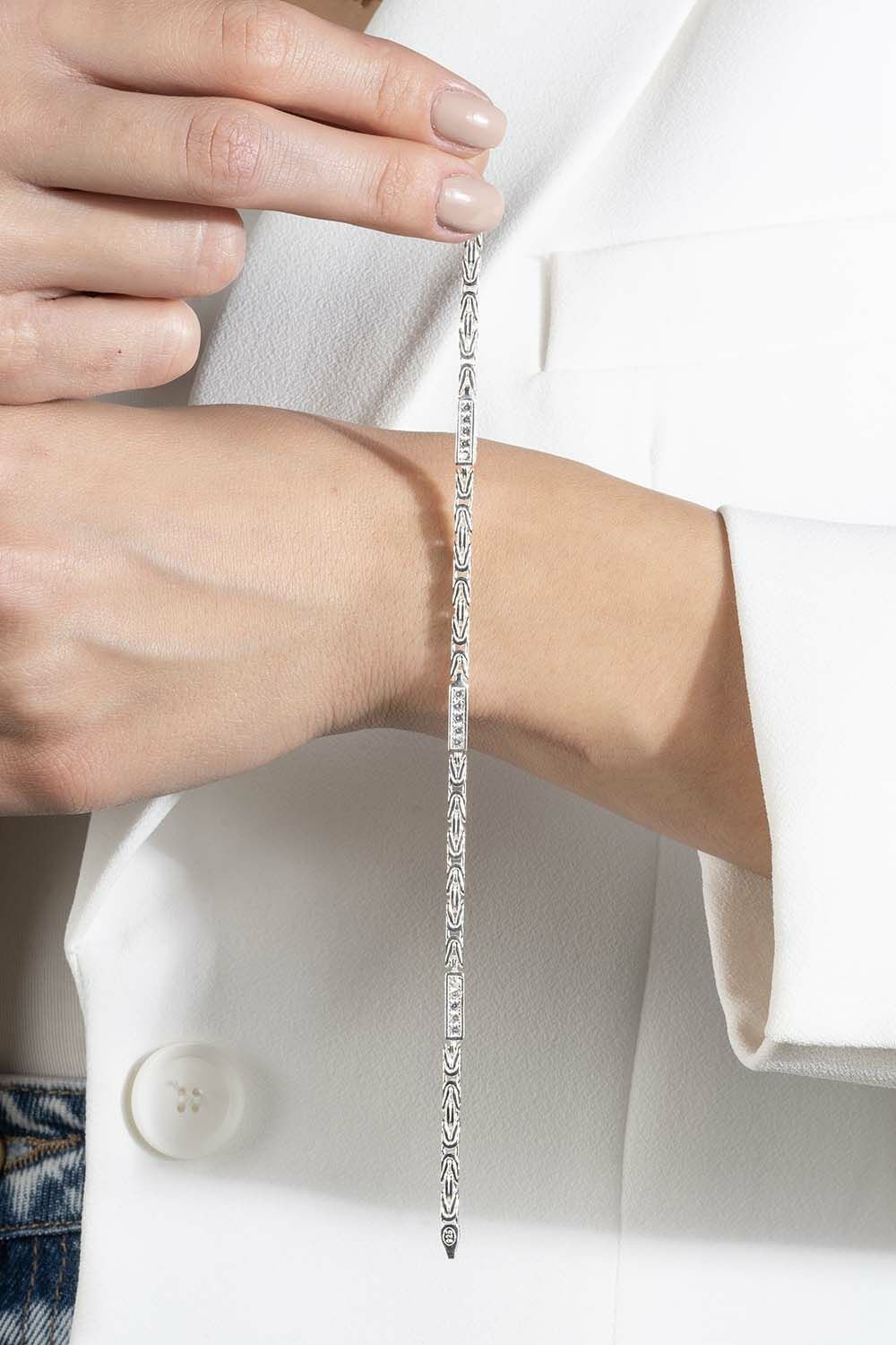 Farklı renklerde (silver, gold, rose) hazırlayabildiğimiz, klasik desenlere sahip gümüş zincir bileklik modelimiz. Bileklik, 925 ayar gümüş ile imal edilmiştir. Sipariş verildikten sonra 1-2 iş günü içerisinde kargoya verilir.