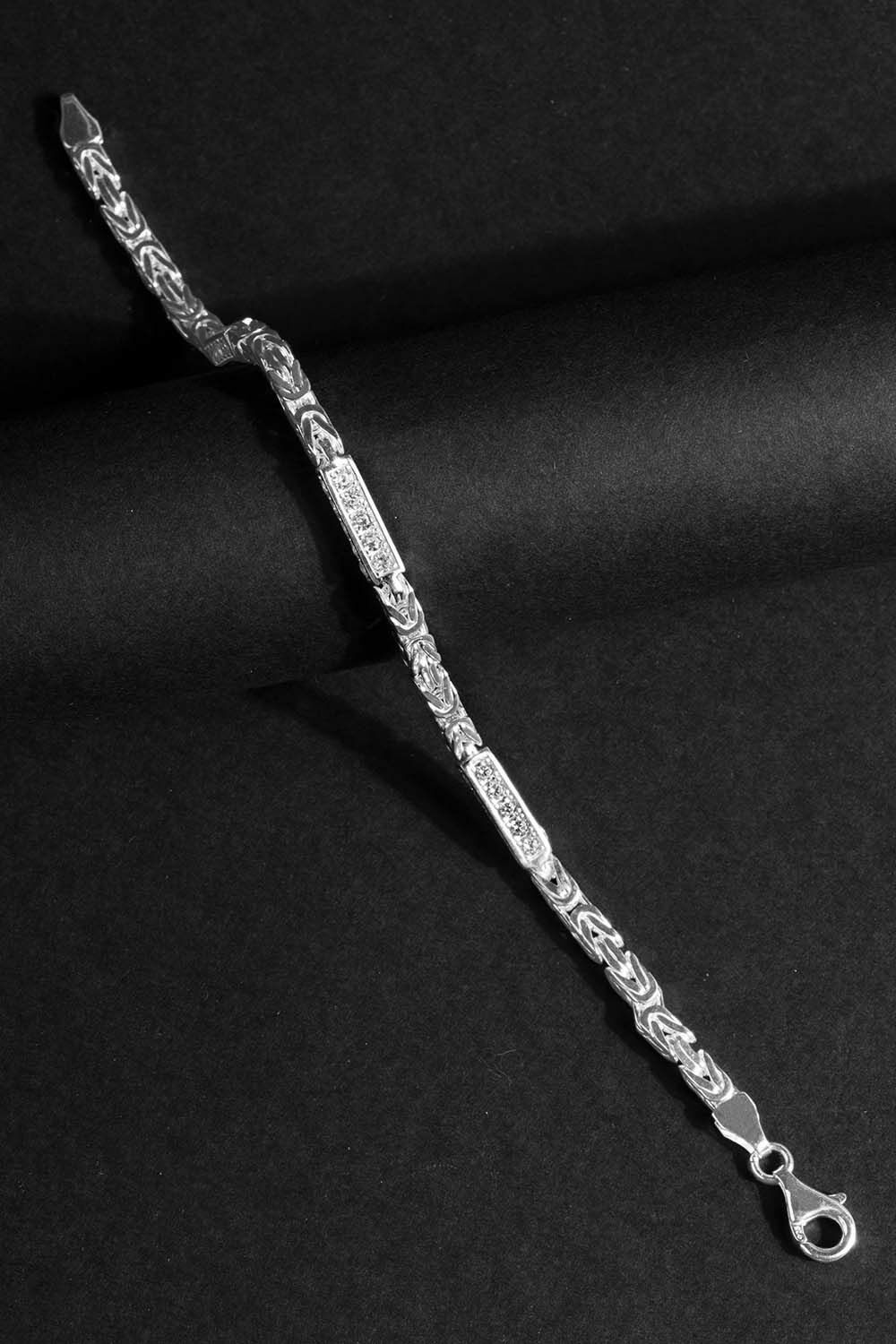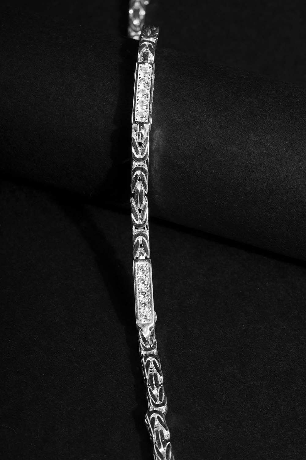 Zarif bir minimalizm ve el işçiliği ile özel tasarım detaylarla bezeli olan bu özel erkek bileklik, stilinize sofistike bir dokunuş katıyor. Taşlı Kare Kral modeliyle öne çıkan bu bileklik, özel işçilikle 925 ayar gümüşten imal edilmiştir.