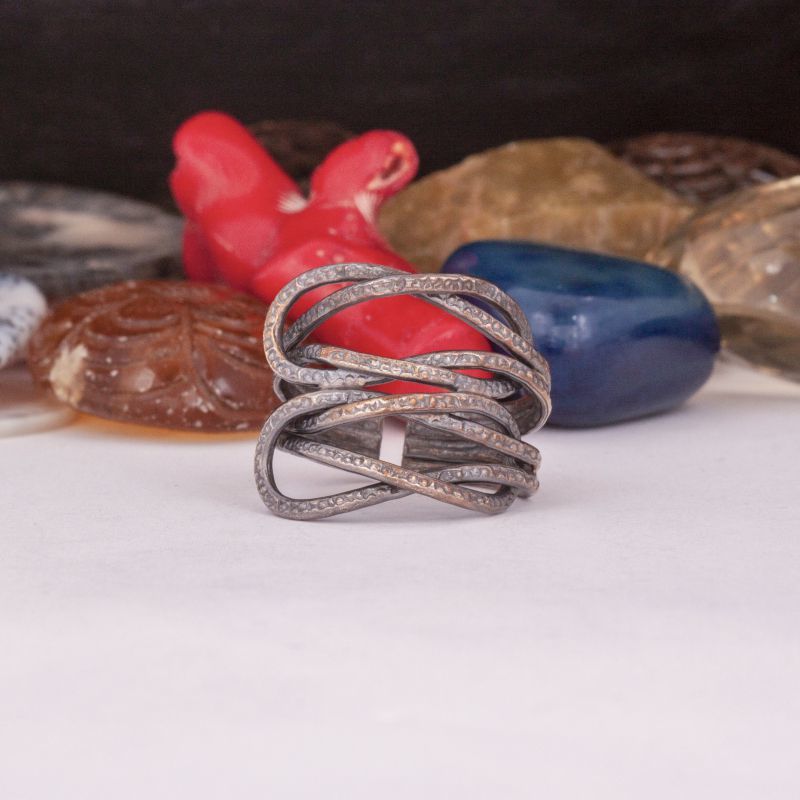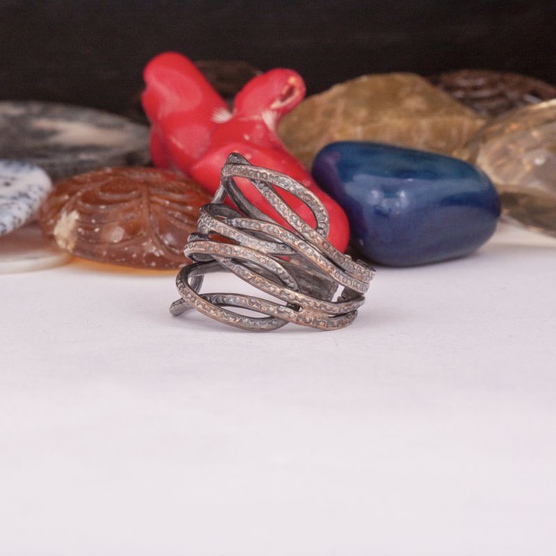 Taşsız El İşi Oksitli Model Tasarım Gümüş Yüzük |