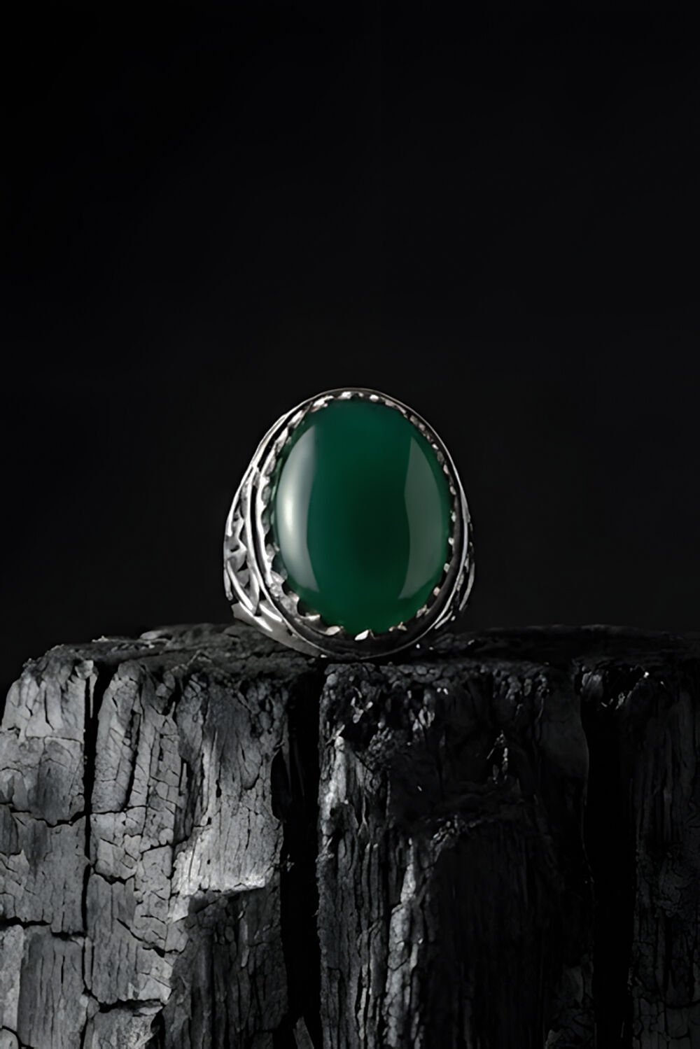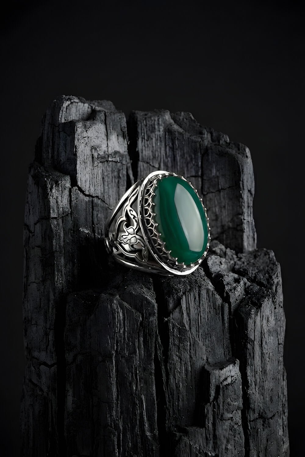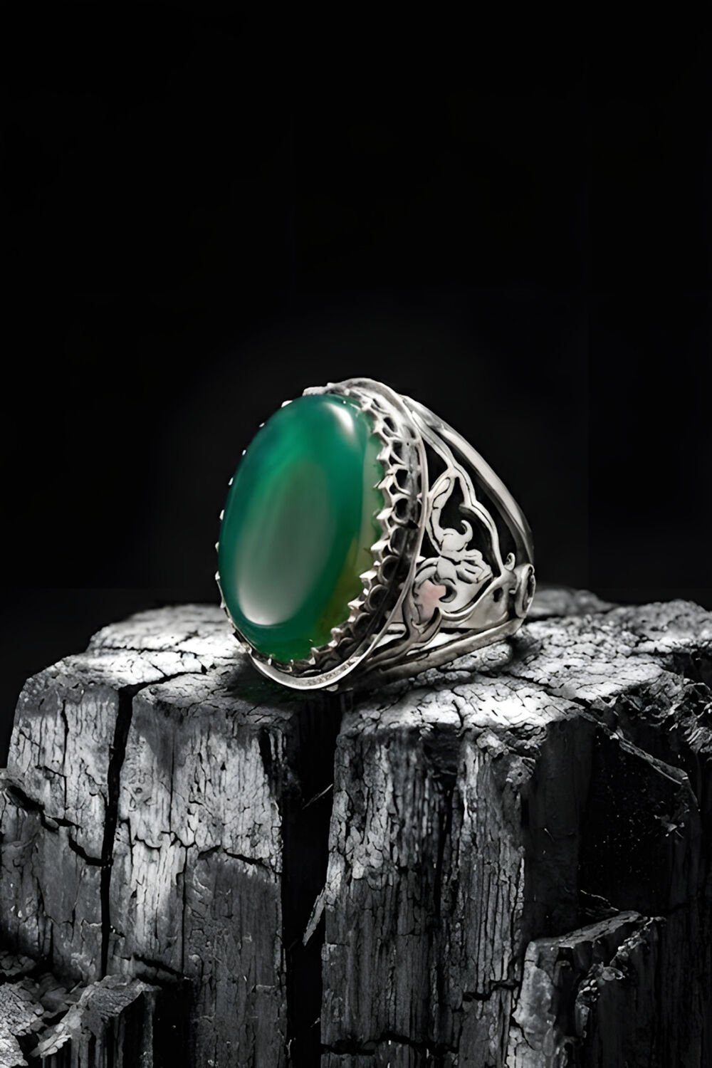 Doğal Taşın Enerjisi: Yeşil akik taşı, doğada denge ve uyumun simgesidir. Canlı yeşil tonu, gümüşün asil parlaklığıyla kusursuz bir kontrast oluşturur.