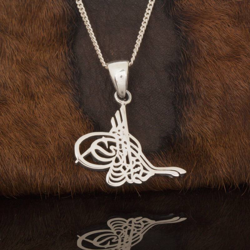 Osmanlı Devlet Tuğrasını işlediğimiz gümüş kolye modelimiz. Kolye, 925 ayar gümüş ve kendi atölyemizin işçiliği ile hazırlanmıştır. Sipariş verildikten sonra 1-2 iş günü içerisinde kargoya verilir.