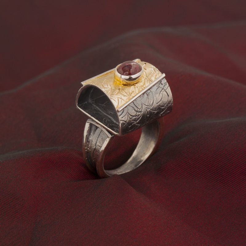 Turmalin Taşlı El İşi Özel Tasarım Gümüş Yüzük |