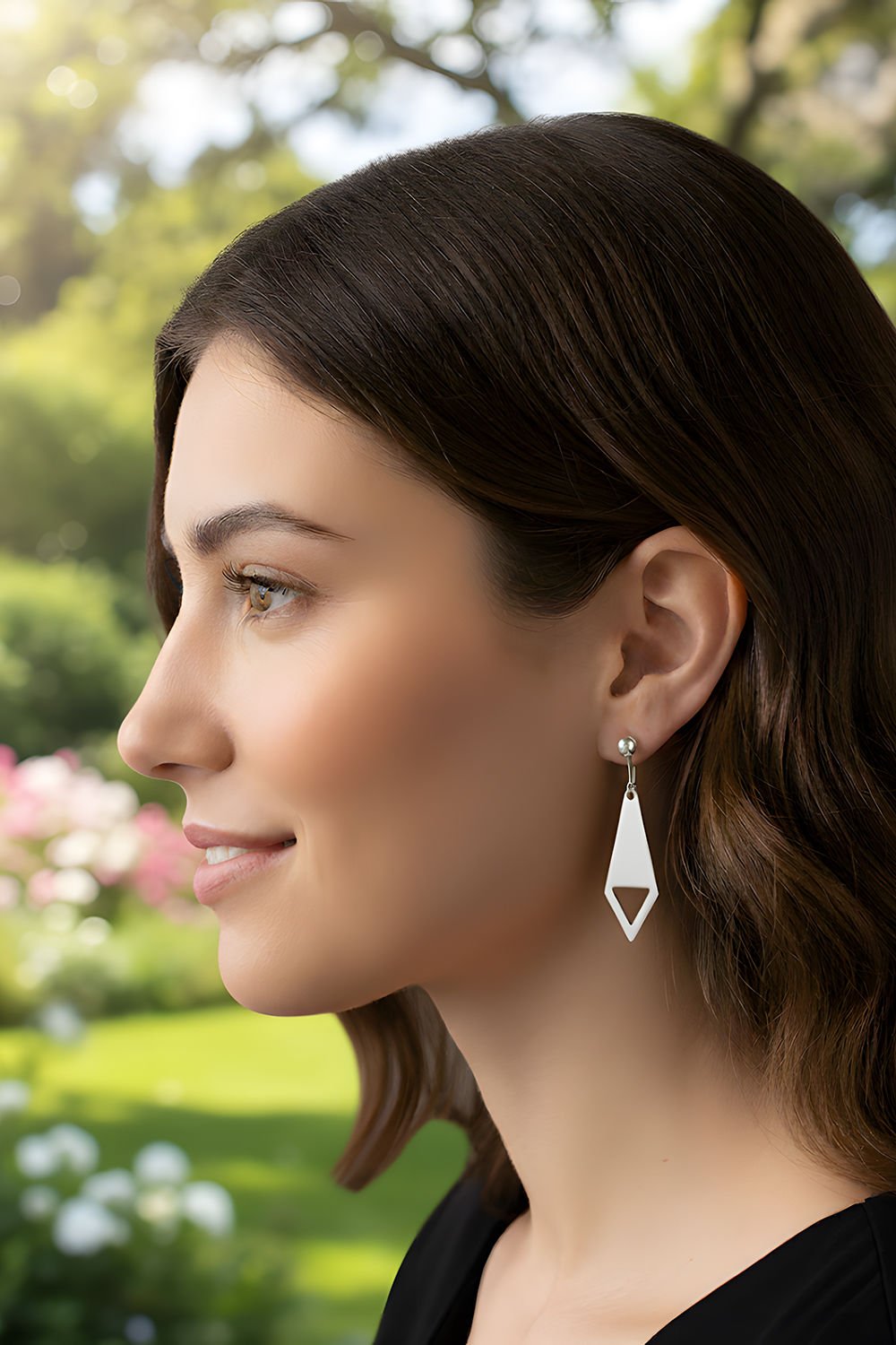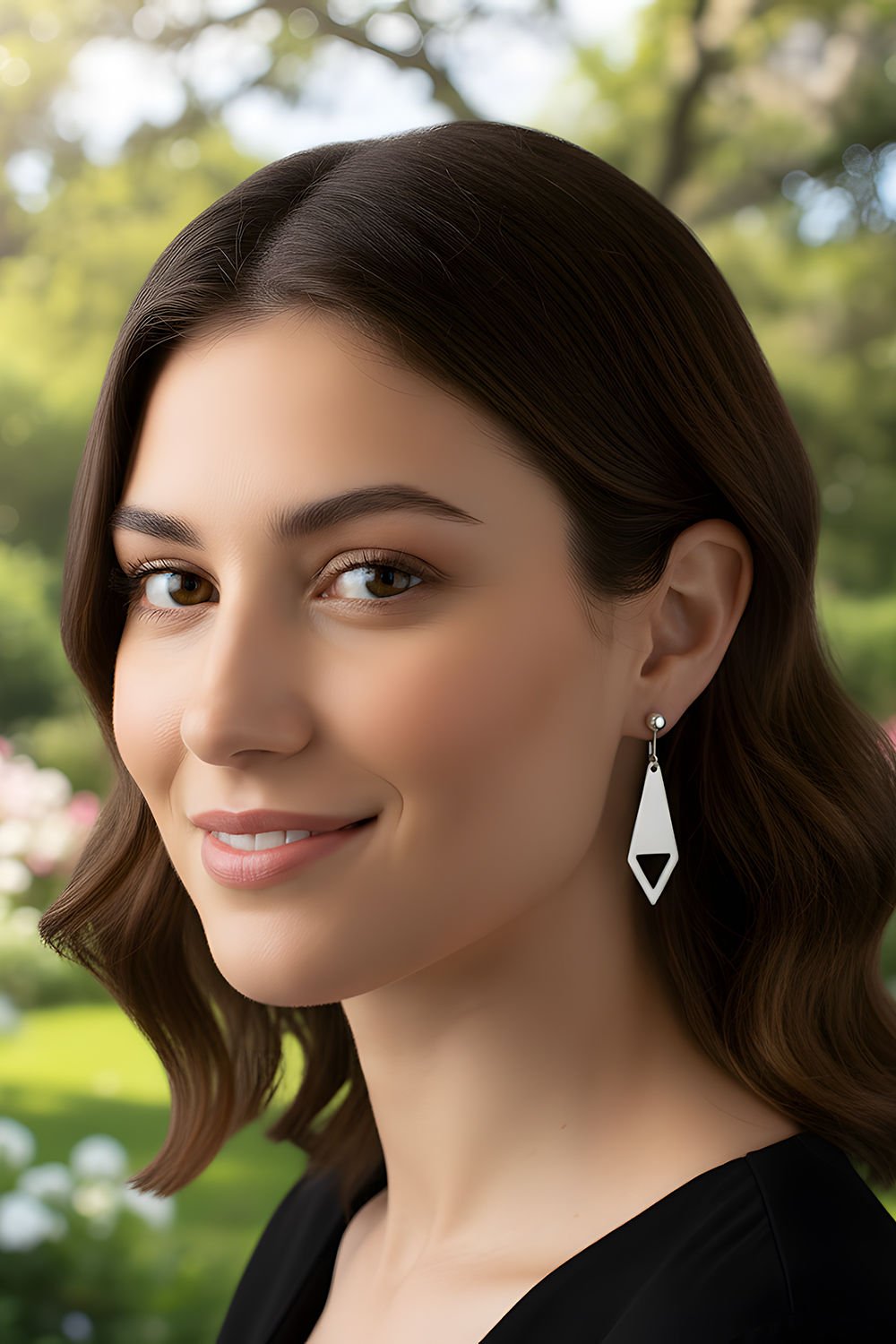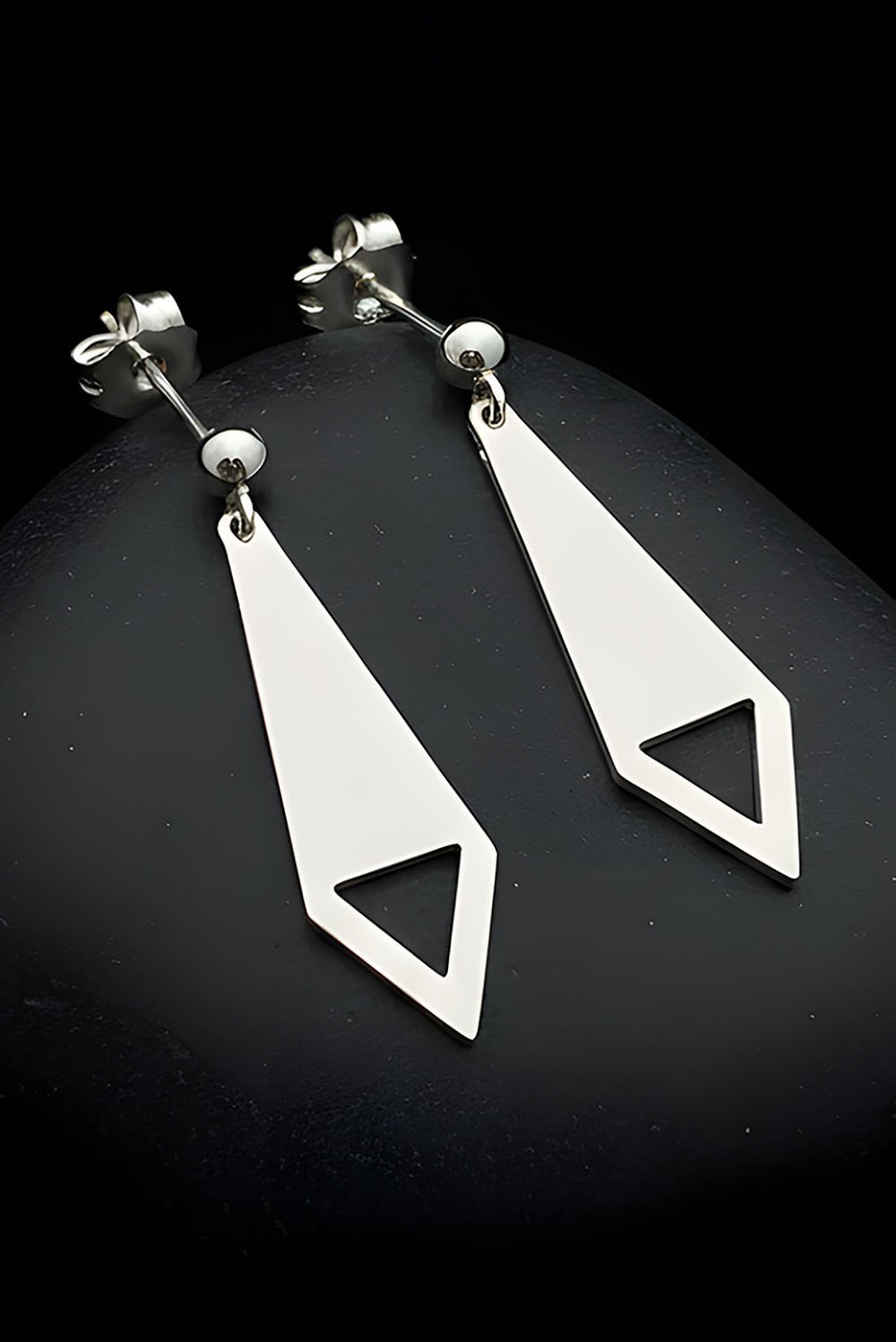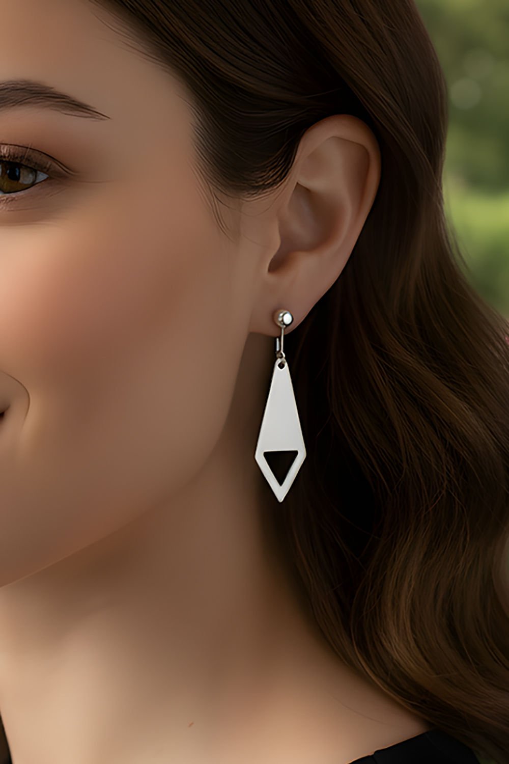 Modern ve Keskin Hatlar: 1,00 x 3,20 cm boyutlarındaki dikey tasarımı, yüz hatlarınızı daha belirgin ve estetik gösterir. Üçgenin dengeli formu, her hareketinizde ışıltıyı farklı açılardan yansıtarak stilinize hareket katar.