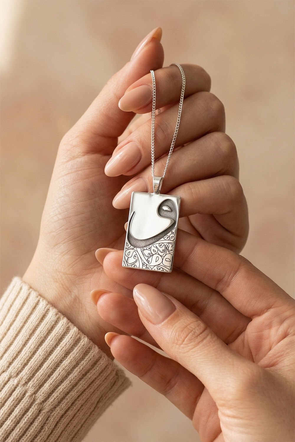 Eksiksiz Set: Ürün, tasarımına tam uyum sağlayan 55 cm uzunluğunda 925 ayar gümüş zinciri ile birlikte gönderilmektedir.