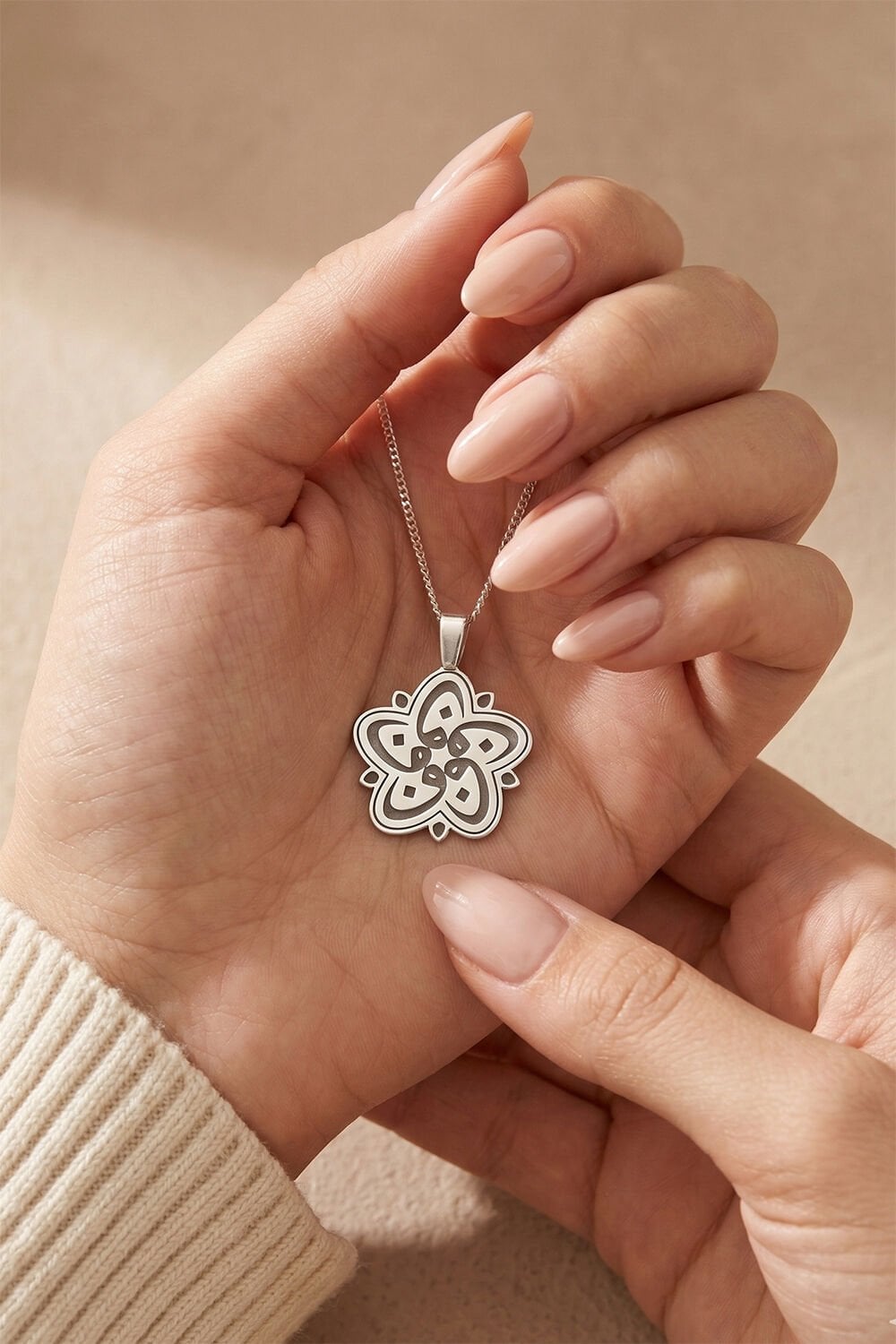 Ürün Tanıtımı: Zarafeti maneviyatla buluşturan Vav'lı Papatya Model Gümüş Kolye, hem kendiniz hem de sevdikleriniz için eşsiz bir tercih. Geleneksel hat sanatının en estetik sembollerinden biri olan "Vav" harfinin beşli bir formda, papatya yapraklarını andıracak şekilde dizayn edildiği bu özel tasarım, 925 ayar gümüş kalitesiyle hayat buluyor.