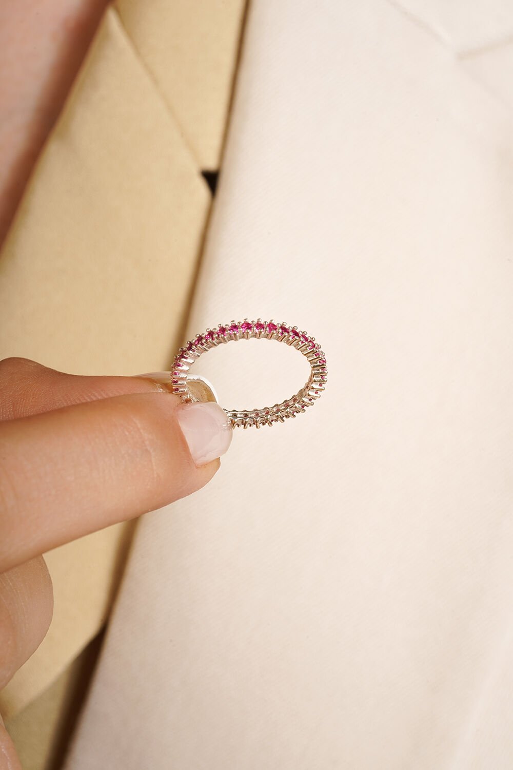 Yakut Renk Zirkon Taşlı Tek Sıra Tamtur Yüzük