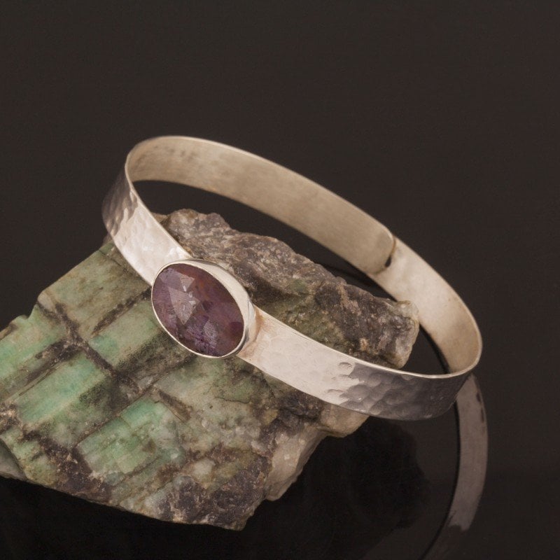 Yakut Taşlı El İşi Kelepçe Model Gümüş Bileklik |