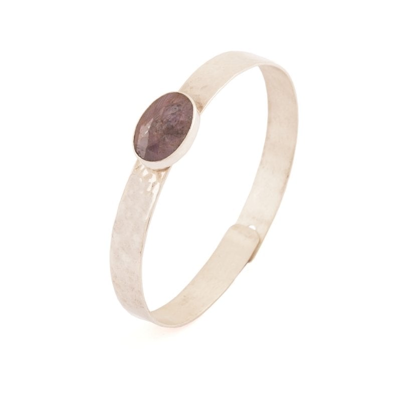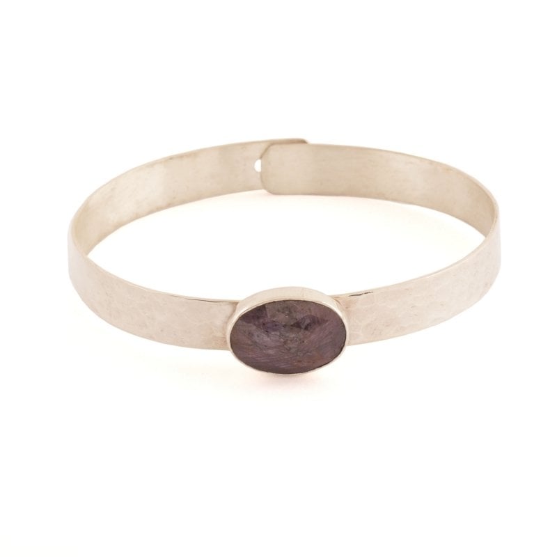 Yakut Taşlı El İşi Kelepçe Model Gümüş Bileklik