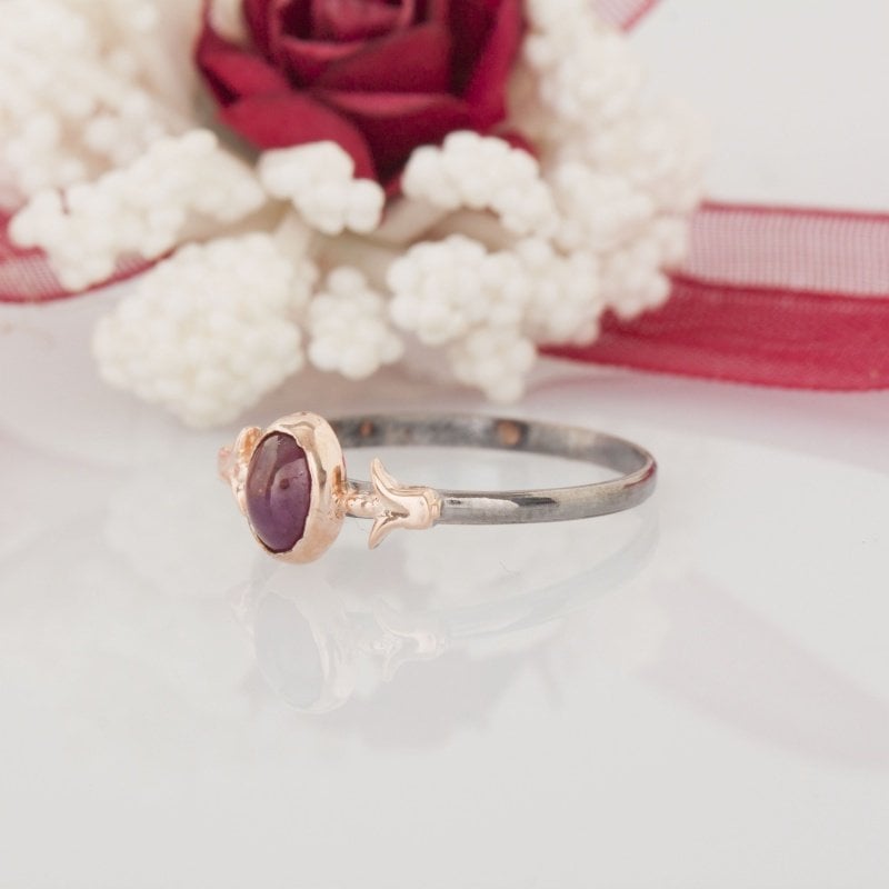 Yakut Taşlı El İşi Minimal Gümüş Yüzük |