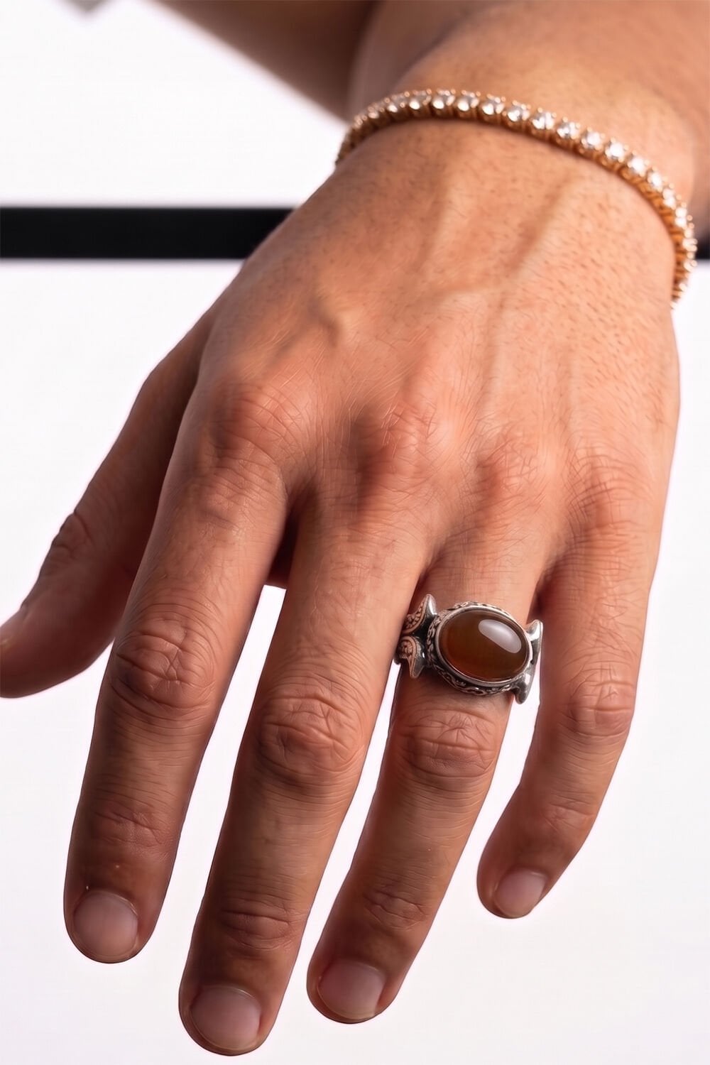 Asaleti parmaklarınızda taşıyın. Katre model gümüş erkek yüzük, geleneksel el işçiliğinin en zarif örneklerinden biri olarak tasarlandı. Klasik tasarımların dışına çıkan yan yerleşimli oval akik taşı, yüzüğe modern ve özgün bir karakter katıyor.