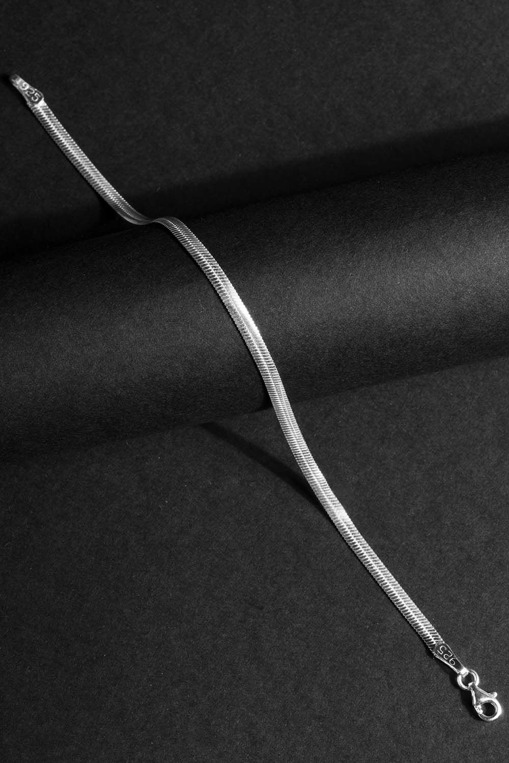 Yassı Yılan Model Minimal Tasarım 925 Ayar Gümüş Erkek Bileklik