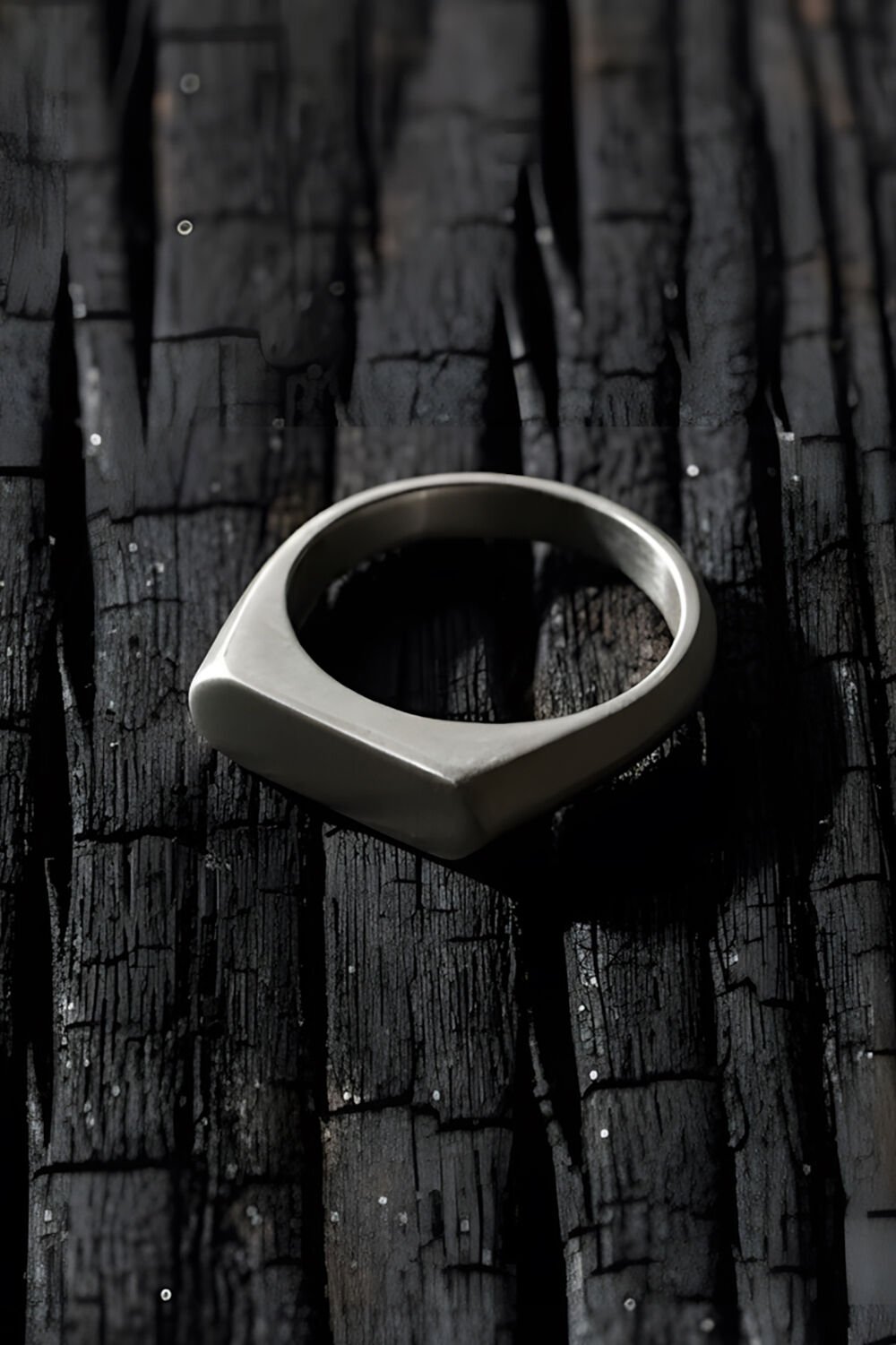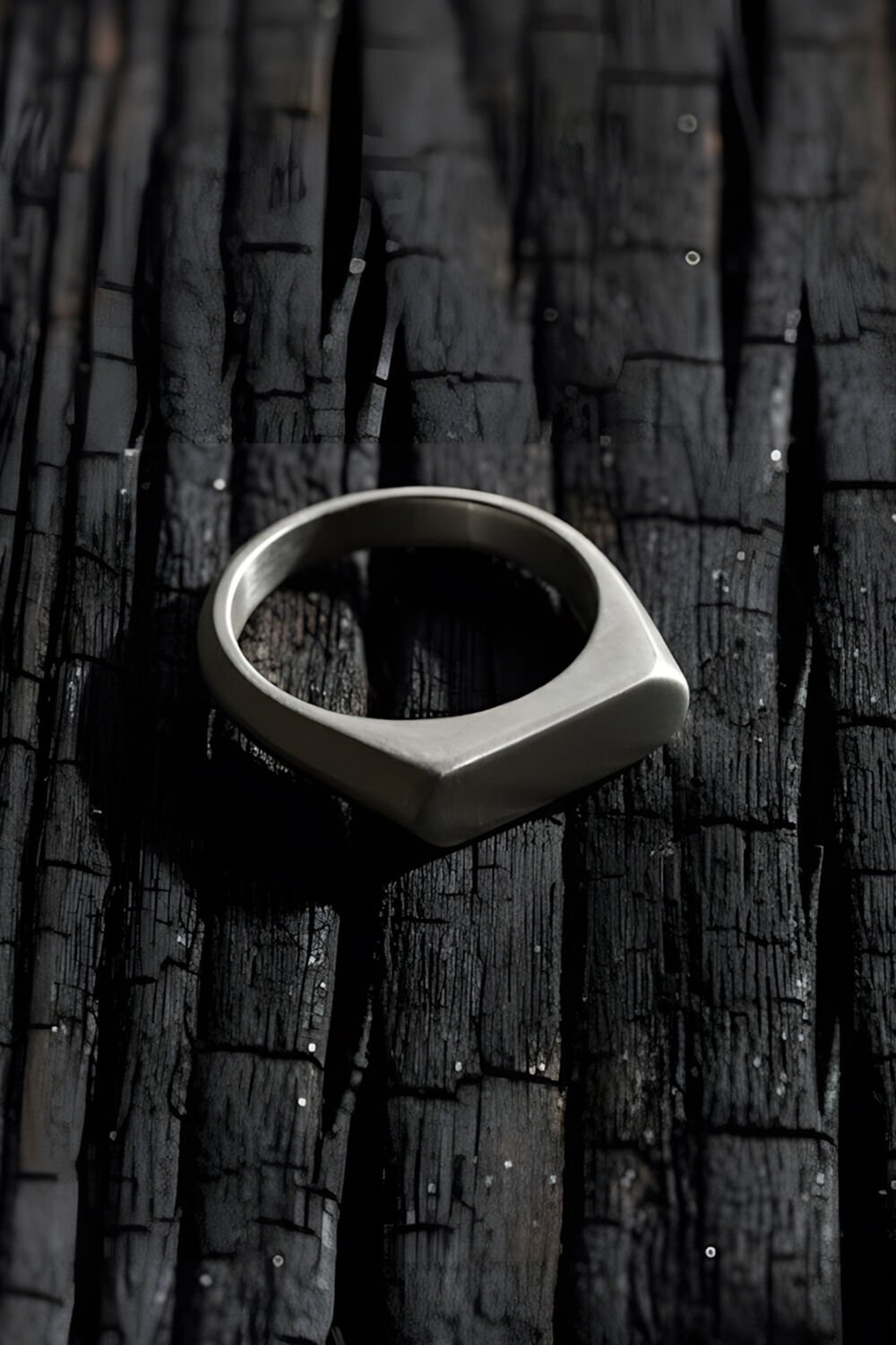 Yatay Altıgen Minimal Gümüş Erkek Şövalye Yüzüğü |