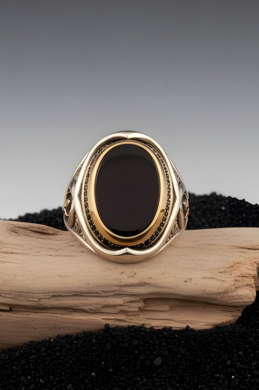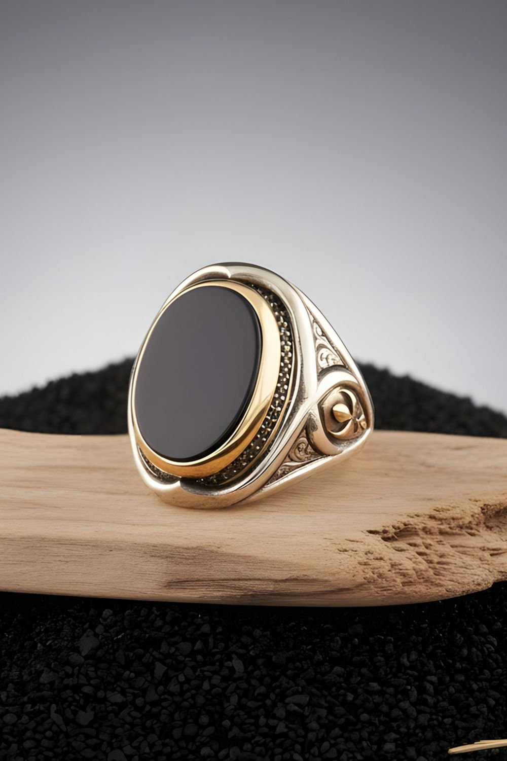 Oniks Taşlı Yeni Rumi Model Gümüş Yüzük |