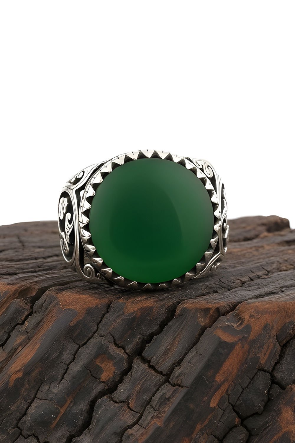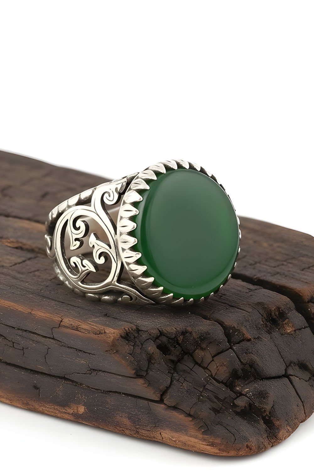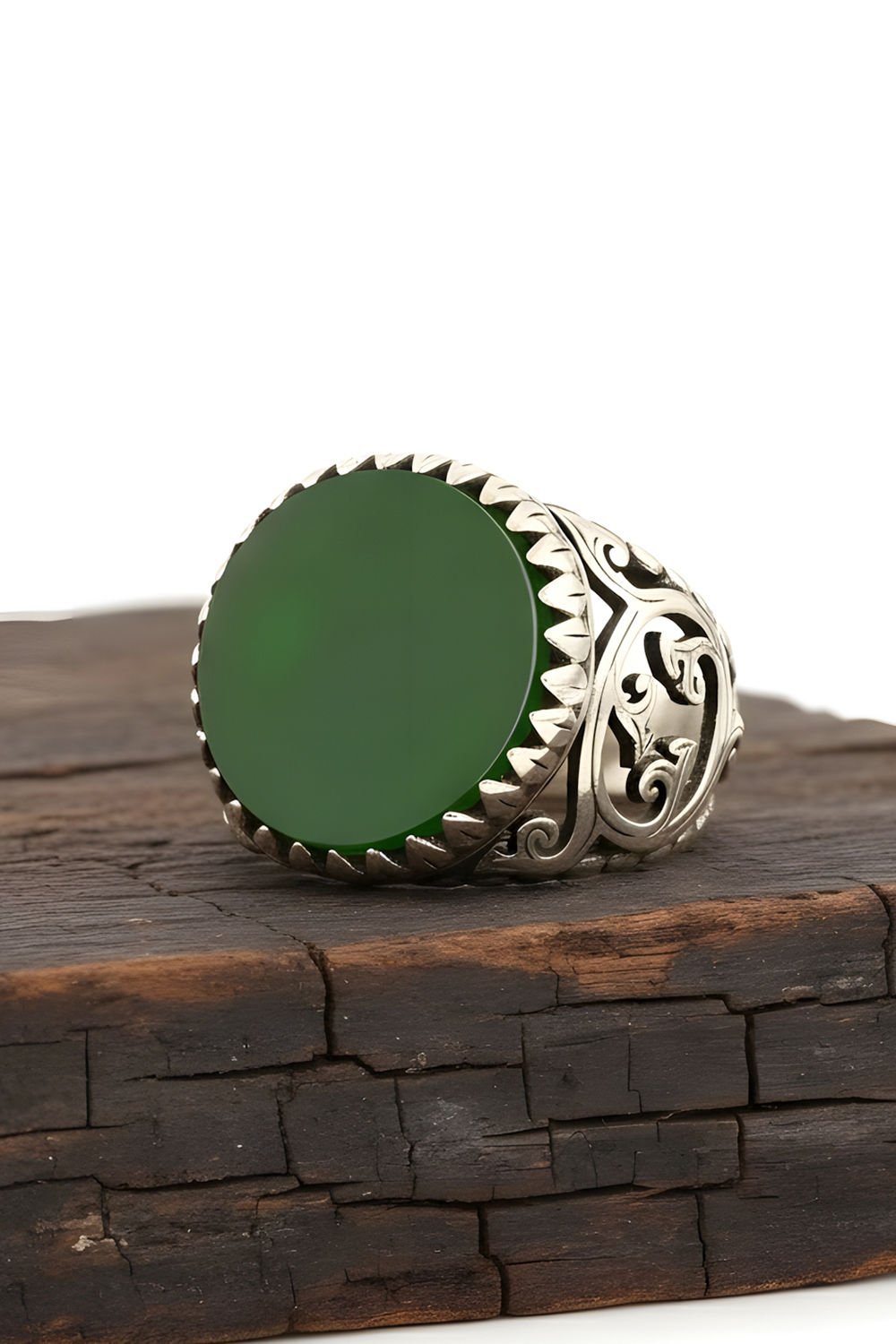 Estetik Yeşil Akik Taşlı Erkek Yüzük