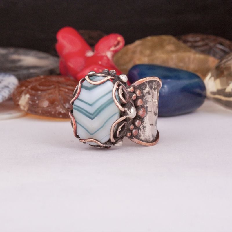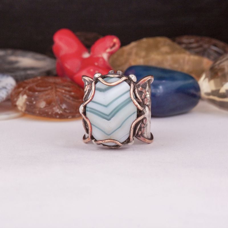 Yeşil Akik El İşi Model Özel Tasarım Gümüş Yüzük |