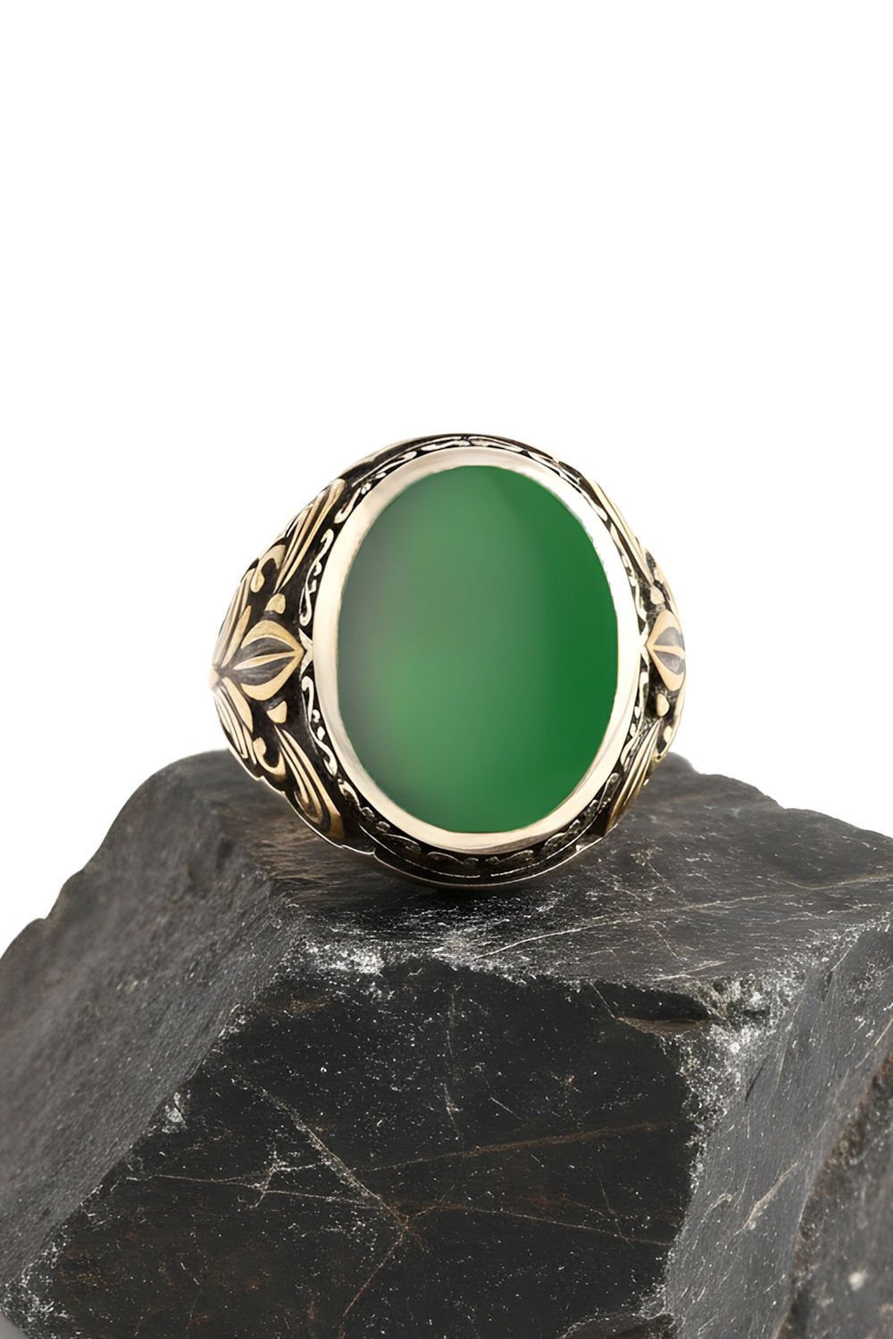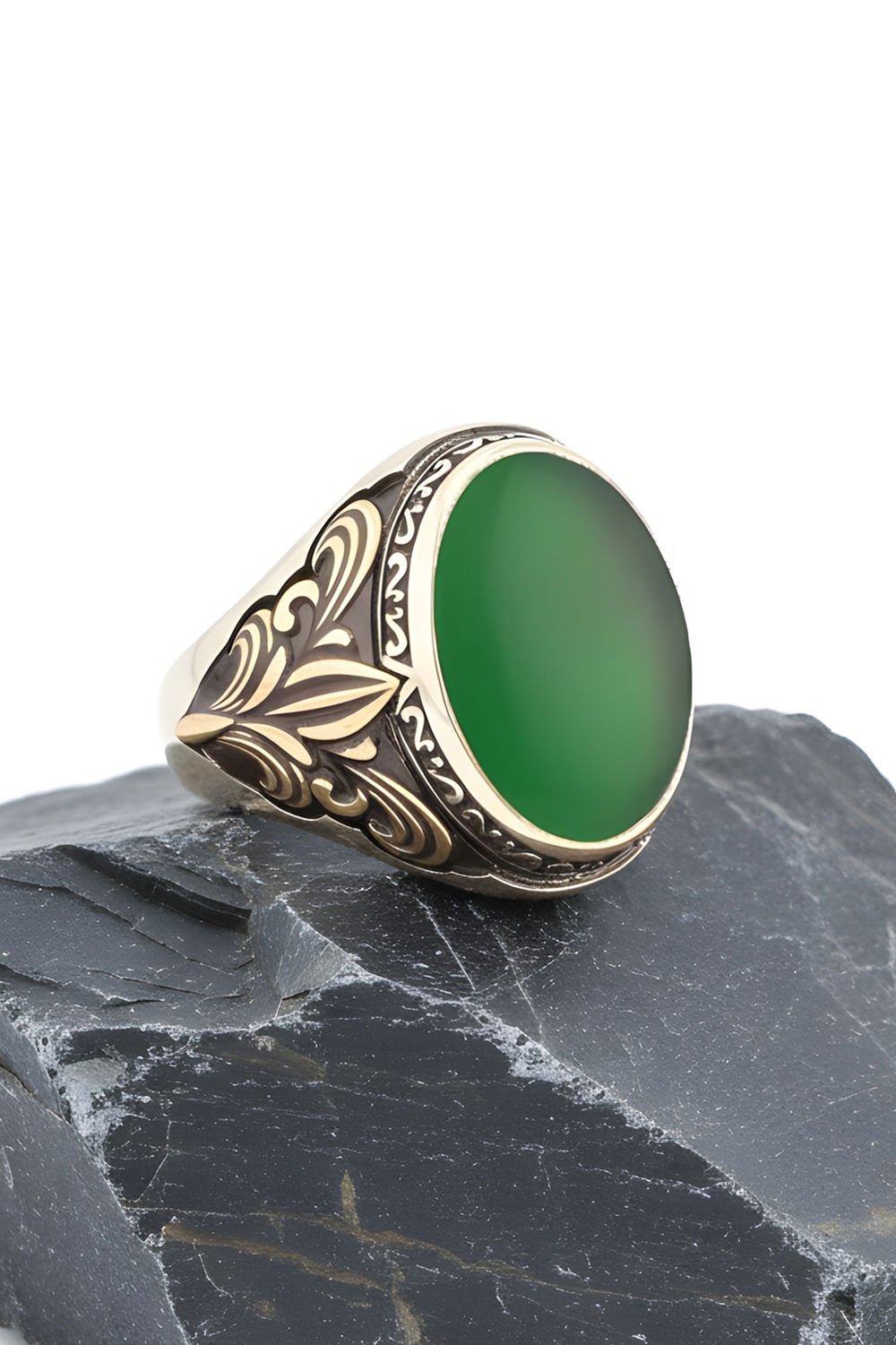 Yeşil Akik Taşlı Gümüş Erkek Yüzük |