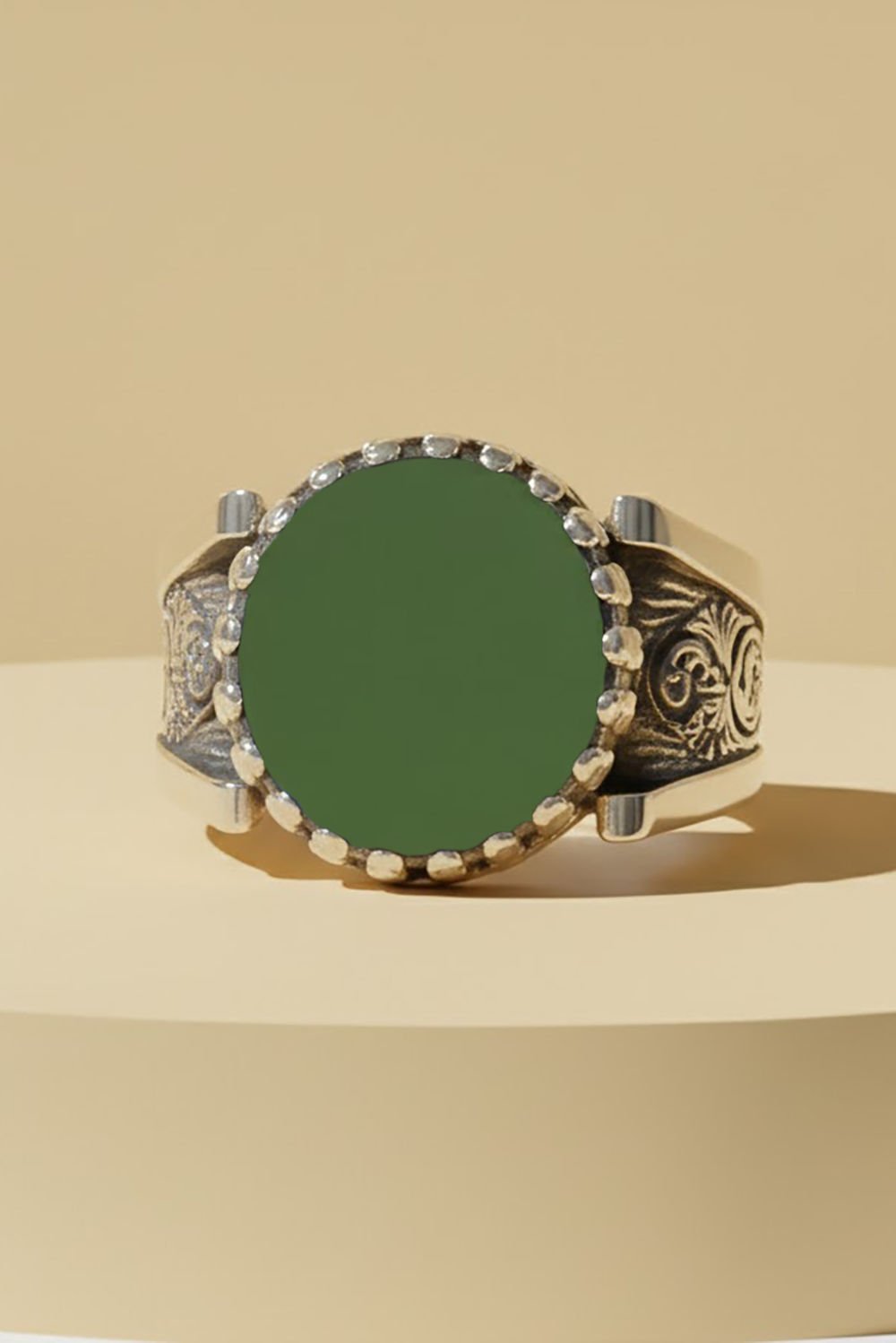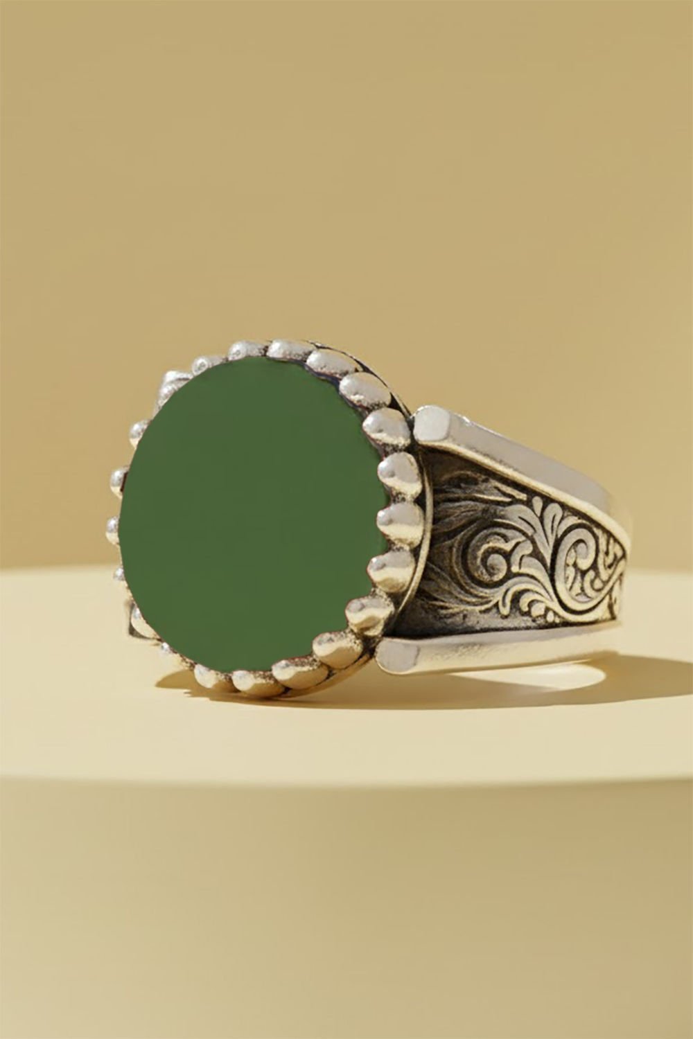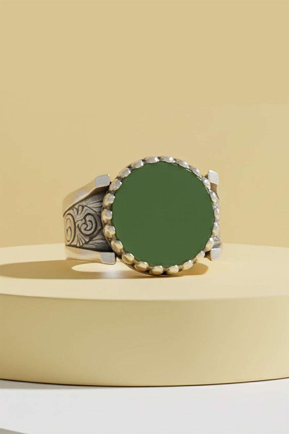 Yeşil Akik Taşlı Payidar Model Gümüş Yüzük |