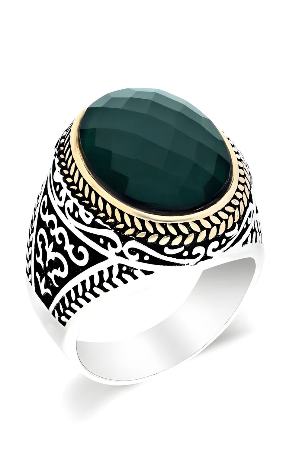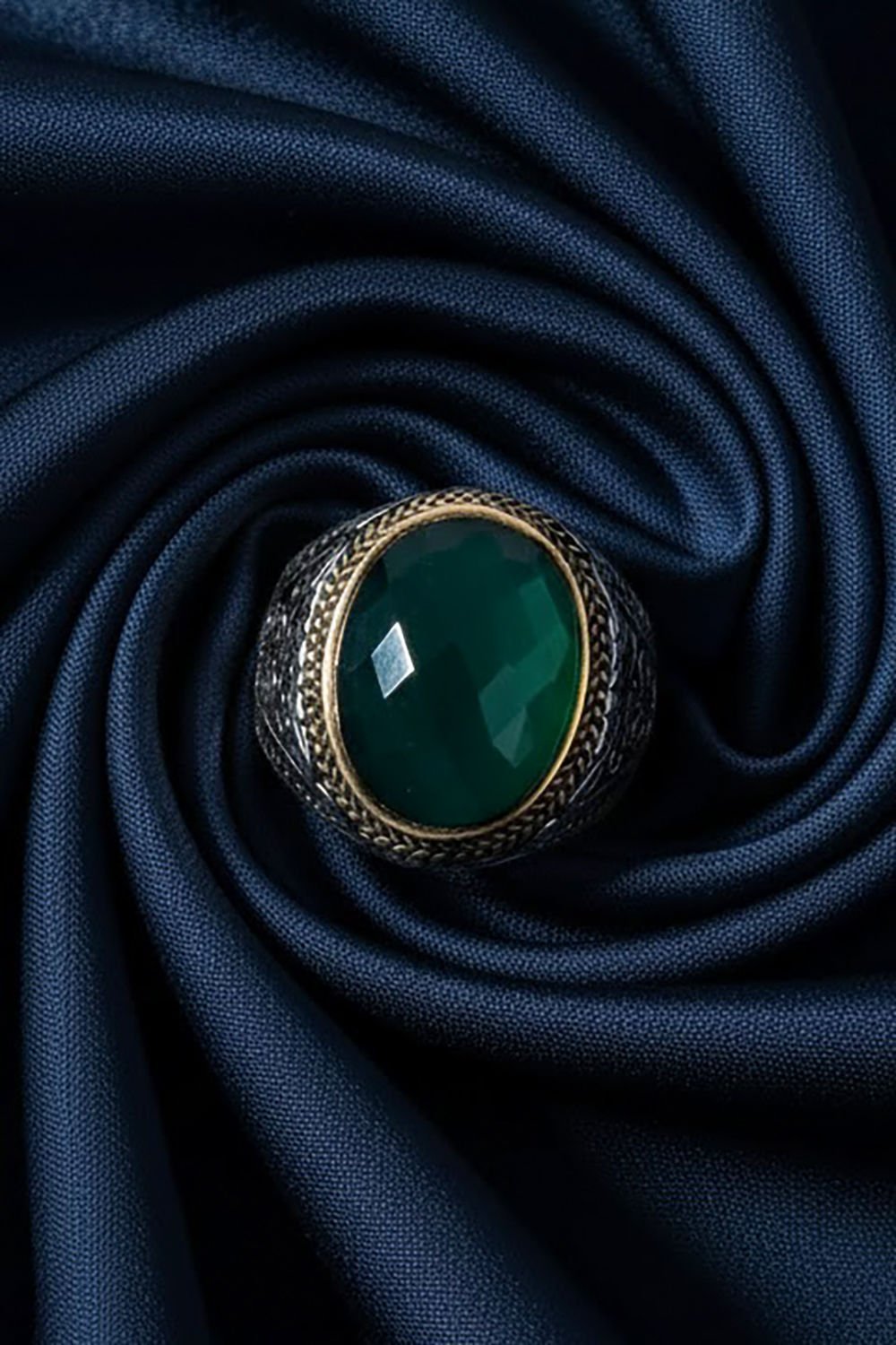 Yeşil Zirkon Taşlı Gümüş Erkek Yüzük |