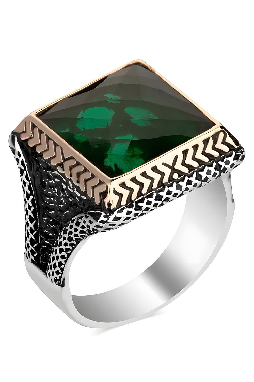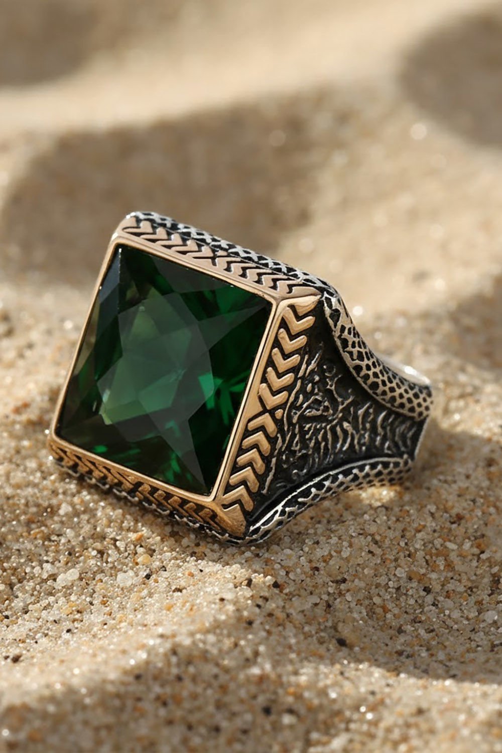 Göz Alıcı Yeşil Zirkon Taşlı Erkek Yüzük
