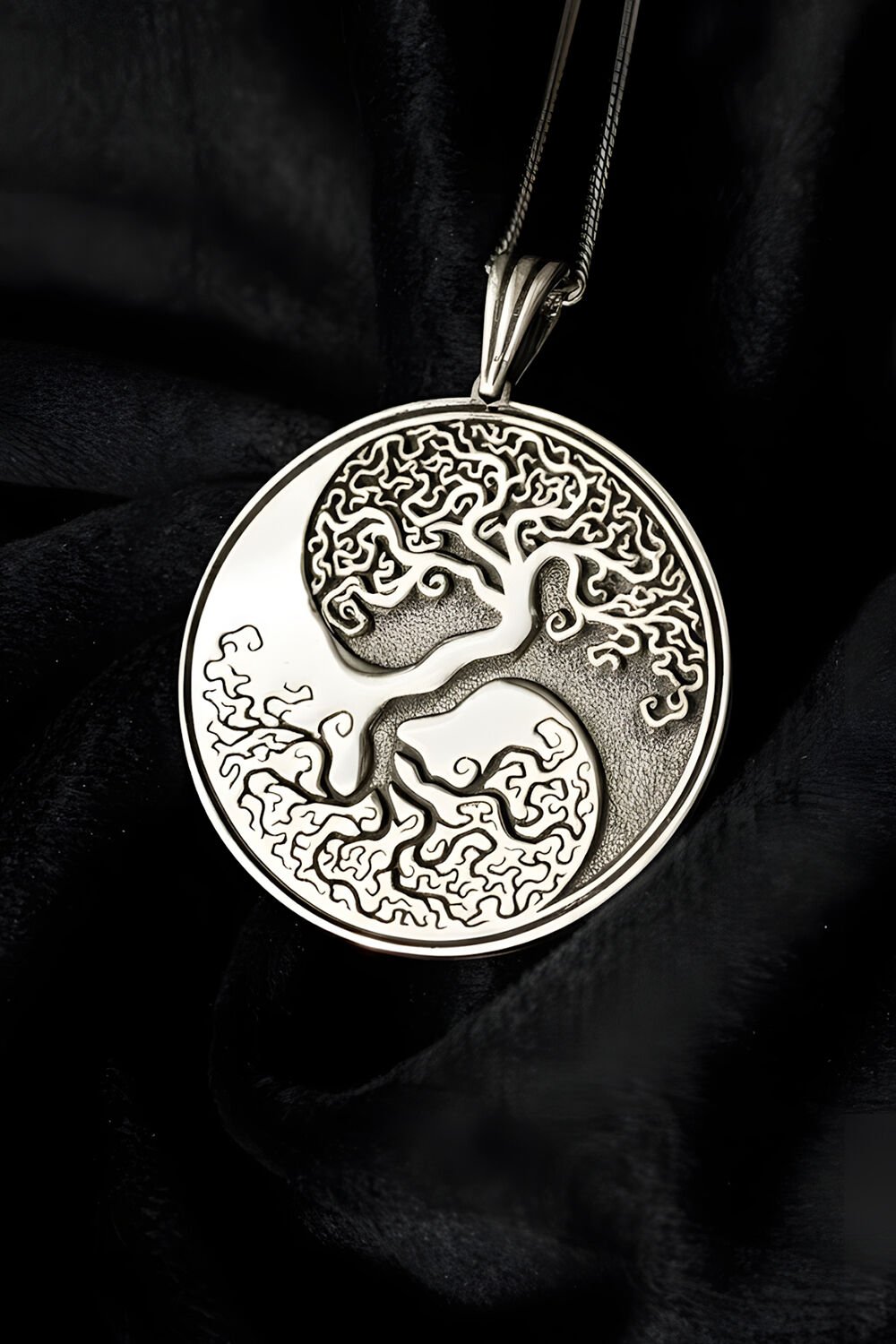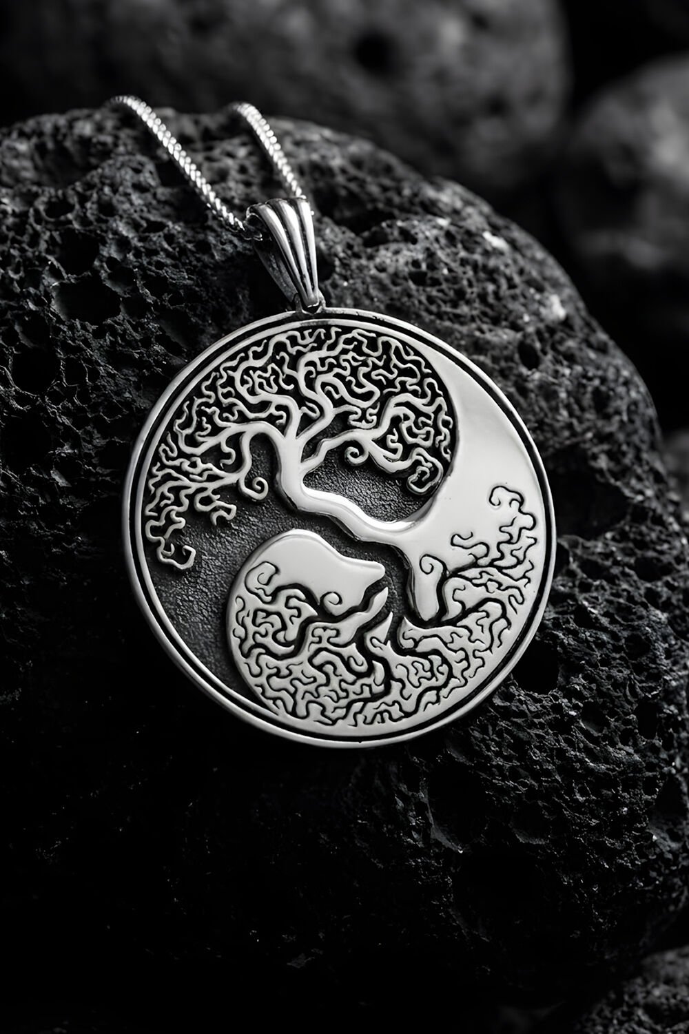 Yin Yang ve Hayat Ağacı Tasarımlı 925 Ayar Gümüş Unisex Kolye