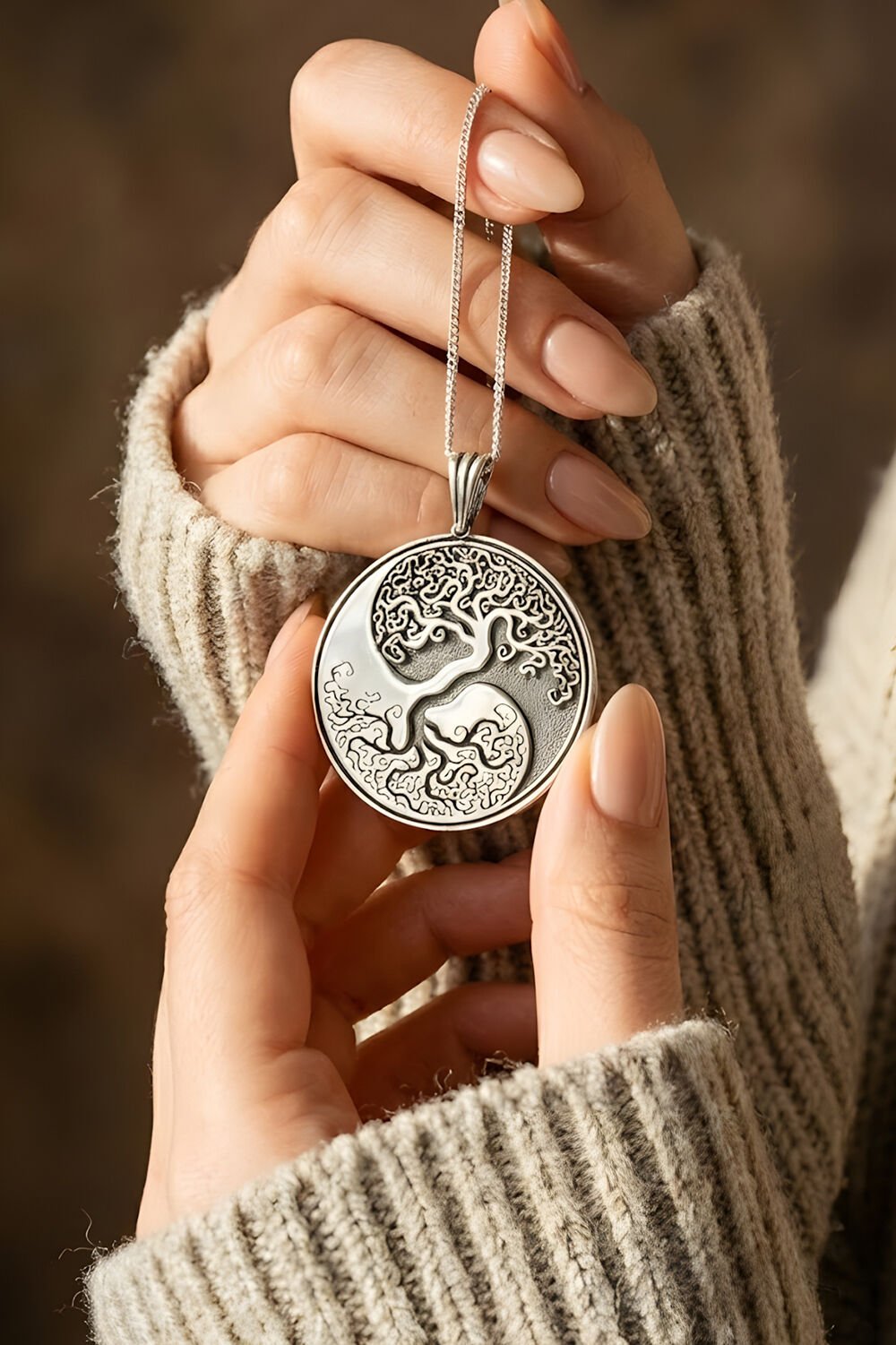 Ürün Tanıtımı: Dengenin sembolü Yin Yang ile sonsuz gelişimin simgesi Hayat Ağacı, bu özel tasarım gümüş kolyede bir araya geliyor. Hem kadın hem de erkek kullanımı için ideal (unisex) olan bu kolye, sadece bir aksesuar değil, aynı zamanda ruhsal bir bütünlüğü temsil eden güçlü bir semboldür. 925 ayar gümüş kalitesiyle ustalıkla işlenen detaylar, oksitlenmiş gümüşün antik dokusuyla birleşerek zamansız bir şıklık sunar.