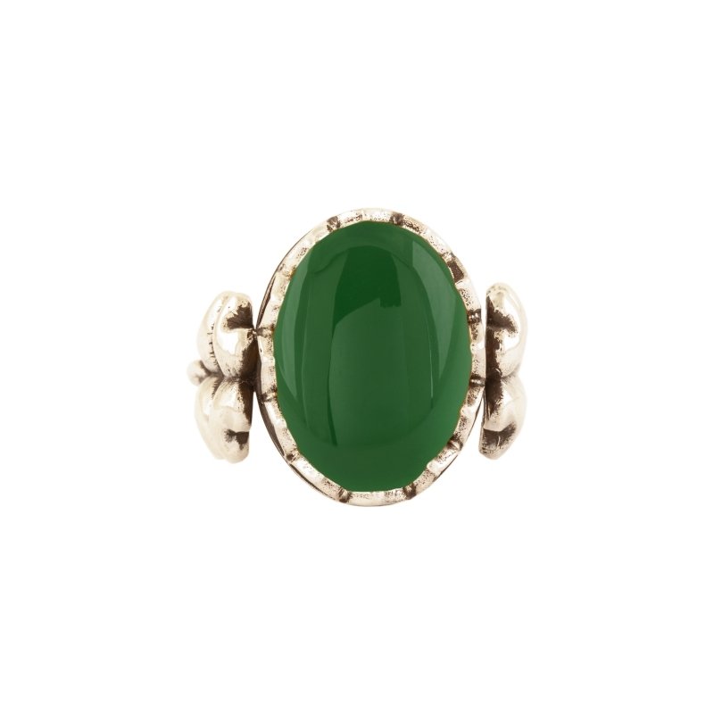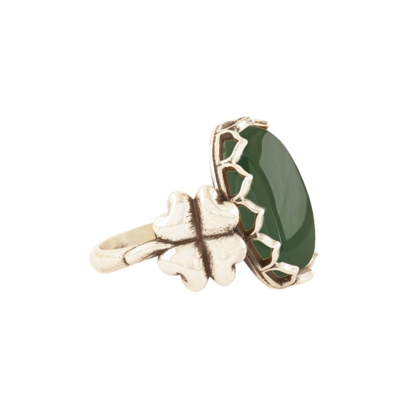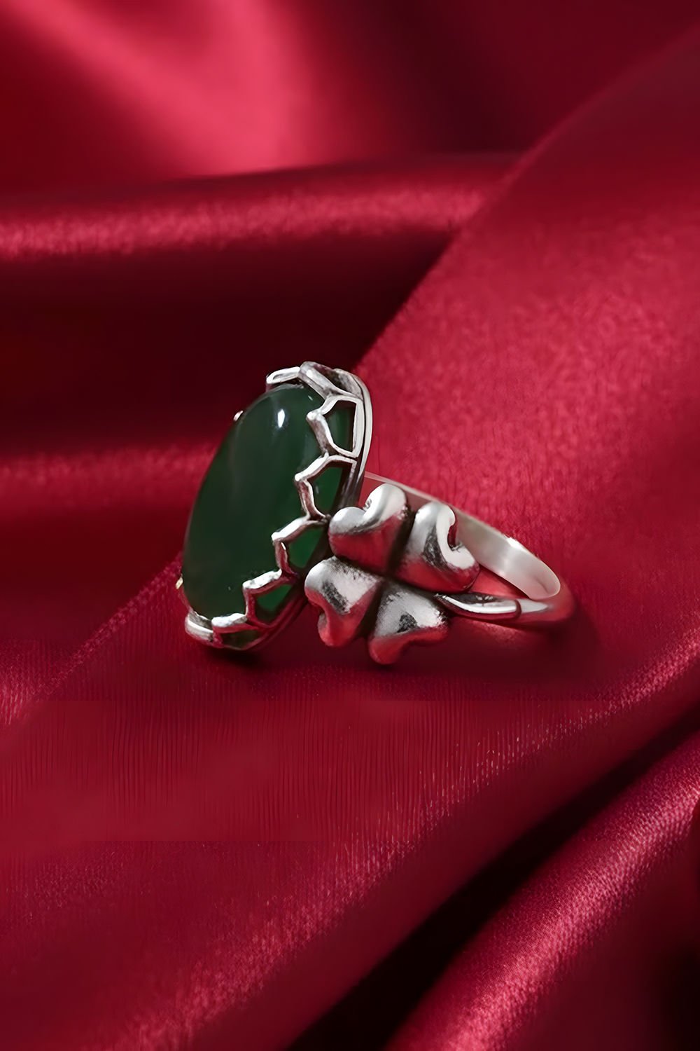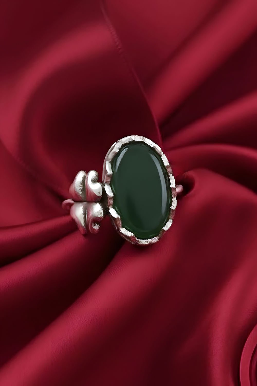 Yonca Model Yeşil Akik Taşlı El İşi Gümüş Yüzük |