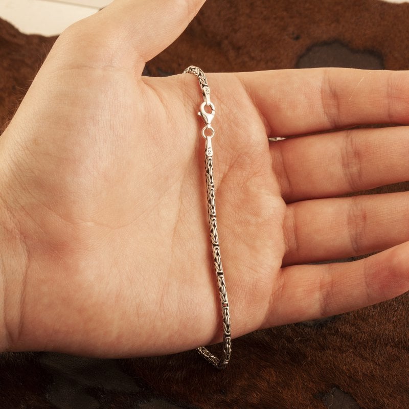 Oksit işlemi ile karartma yaptığımız ince ve minimal bir tarzda burgu deseni uygulanmış gümüş zincir modelimiz. Zincir, 925 ayar gümüş ile imal edilmiştir. Sipariş verildikten sonra 1-2 iş günü içerisinde kargoya verilir.