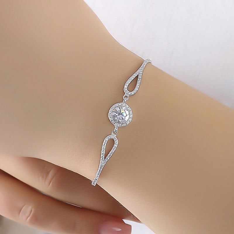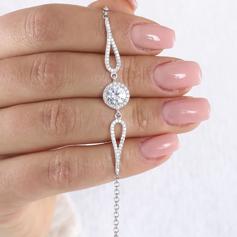 Yuvarlak Zirkon Taşlı Gümüş Bileklik |
