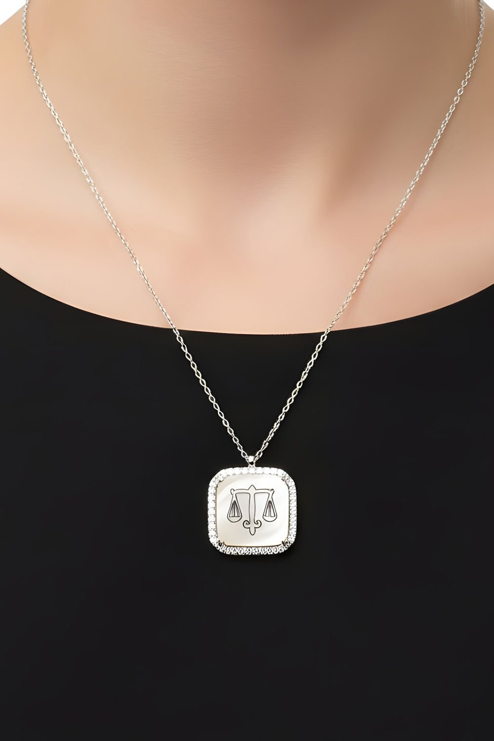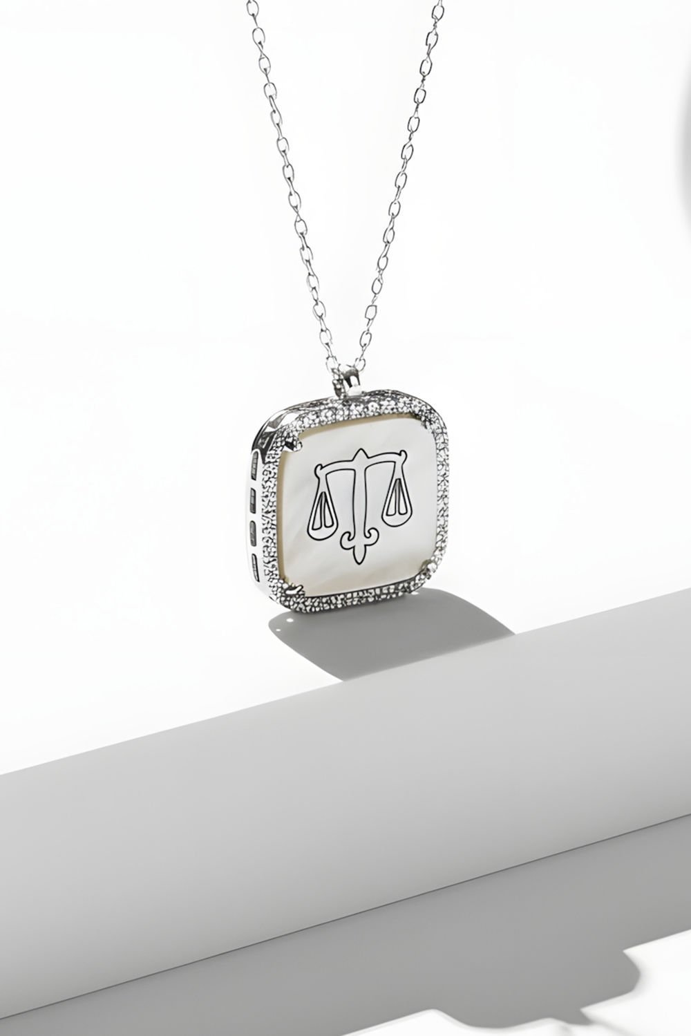Zirkon Taşlı Adalet Terazisi Desenli Gümüş Kolye