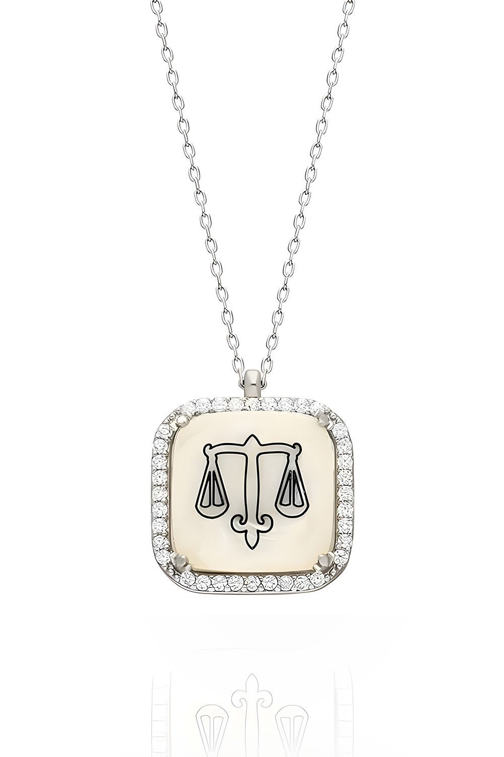 Zirkon Taşlı Adalet Terazisi Desenli Gümüş Kolye |