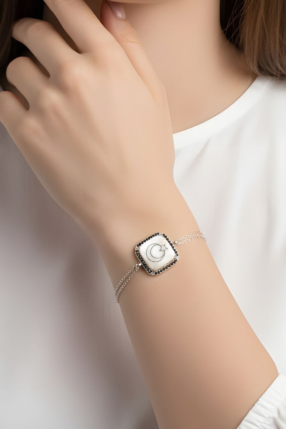 Zirkon Taş Süslemeli Ay Yıldız Gümüş Bileklik |