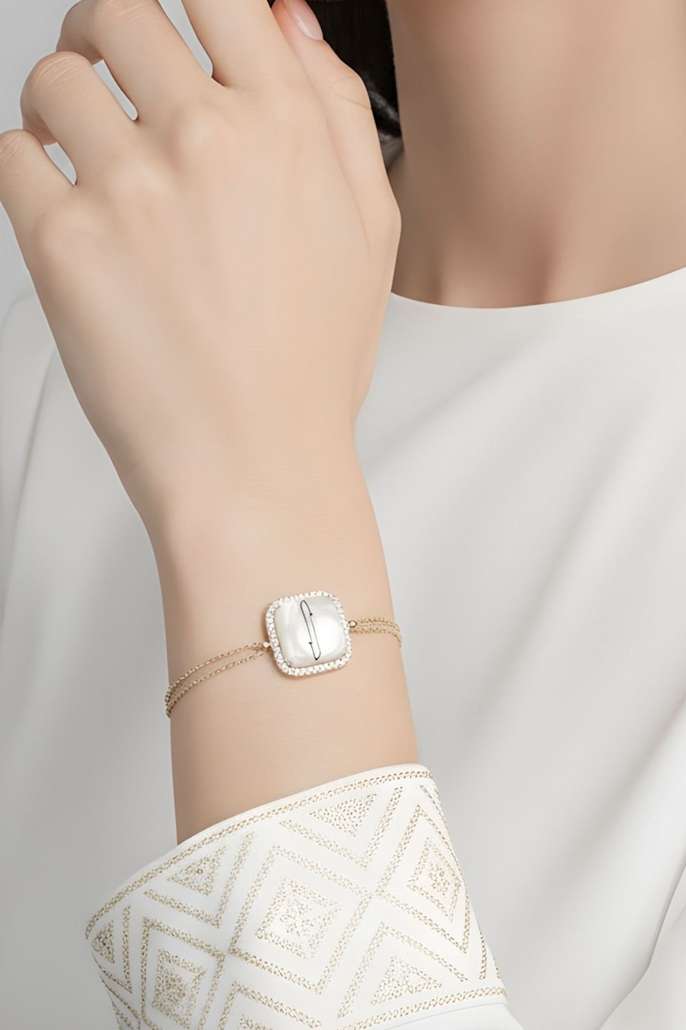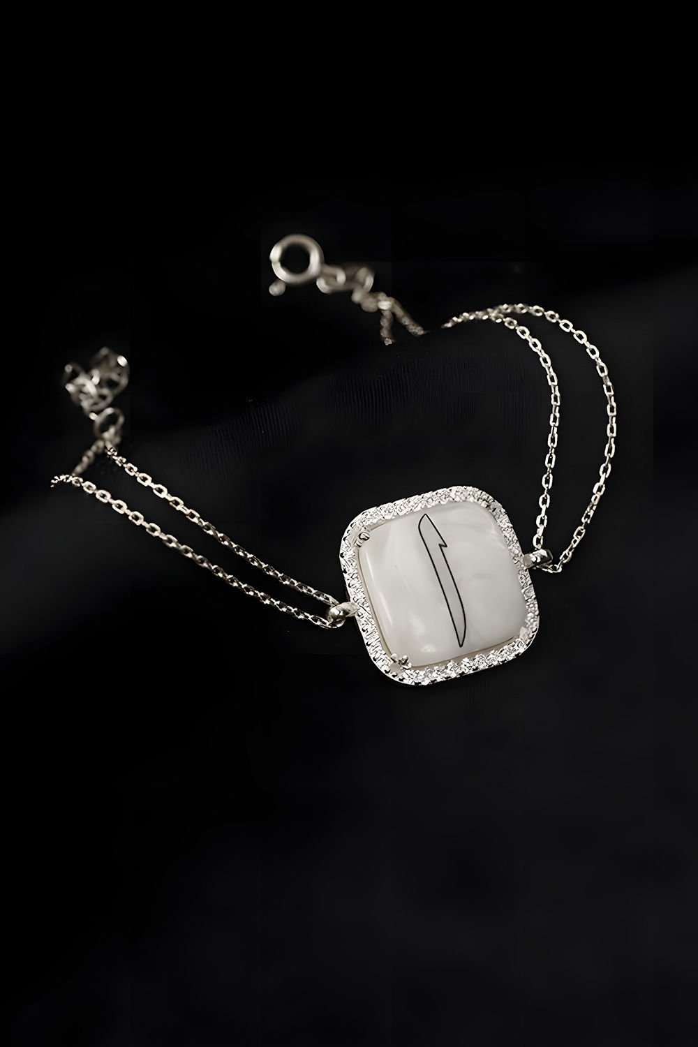 Zirkon Taş Süslemeli Elif Desenli Gümüş Bileklik