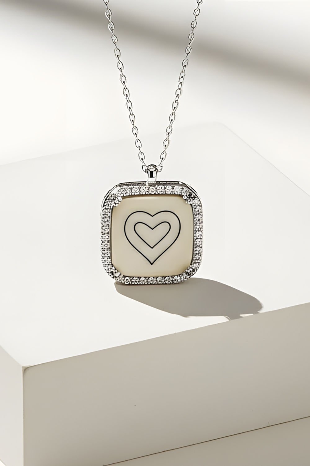 Zirkon Taş Süslemeli Kalp Desenli Gümüş Kolye |