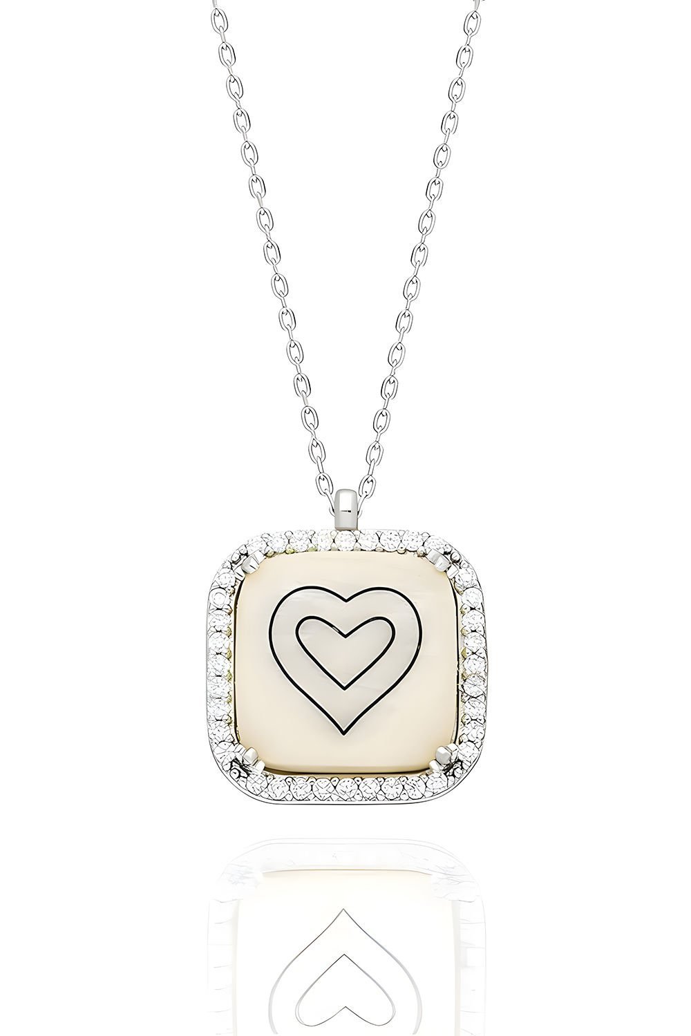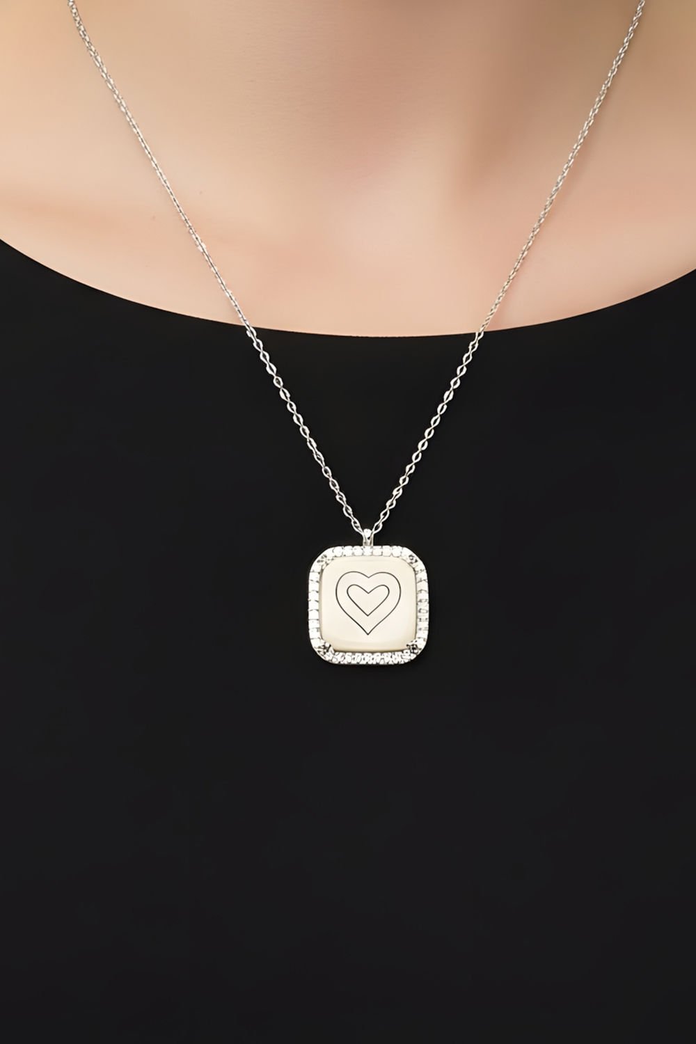 Zirkon Taş Süslemeli Kalp Desenli Gümüş Kolye