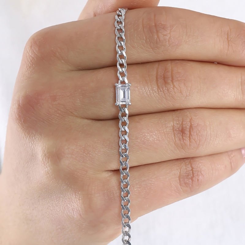 Zirkon Taşlı Gurmet Zincirli Gümüş Bileklik