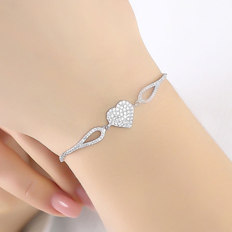 Zirkon Taşlı Kalp Model Gümüş Bileklik