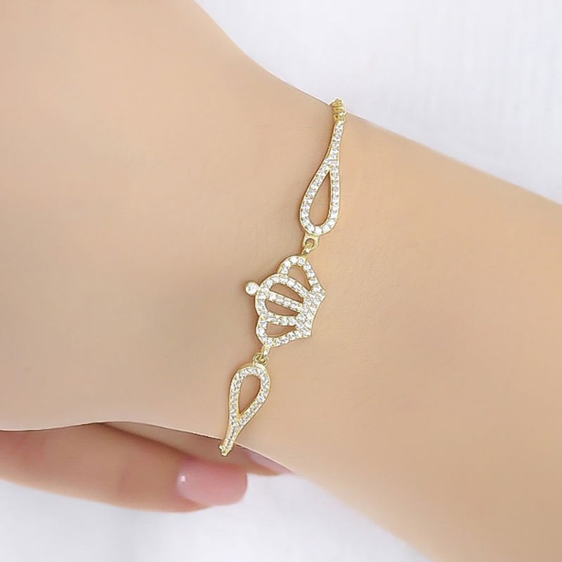 Zirkon Taşlı Prenses Tacı Model Gümüş Bileklik |