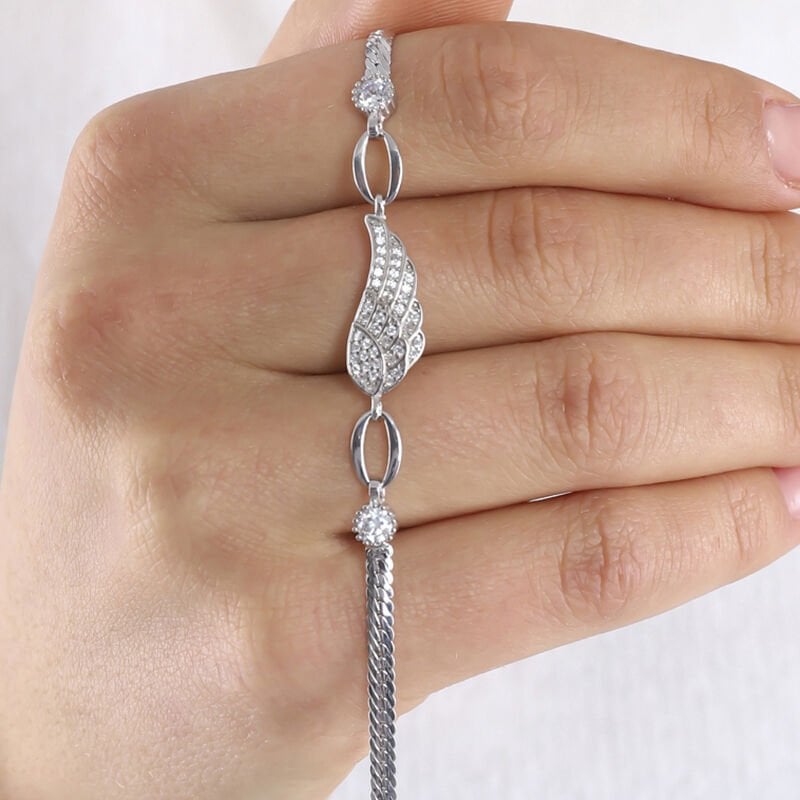 Zirkon Taşlı Tekli Melek Kanadı Gümüş Bileklik |