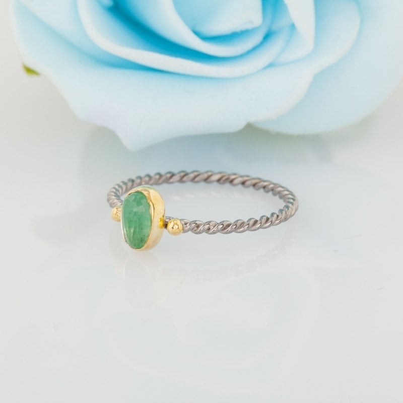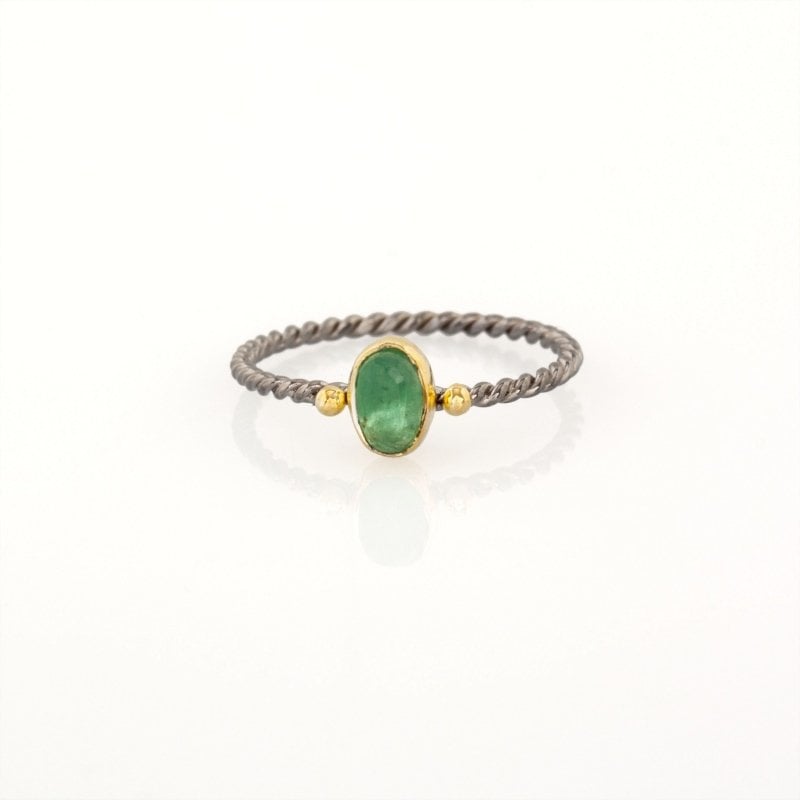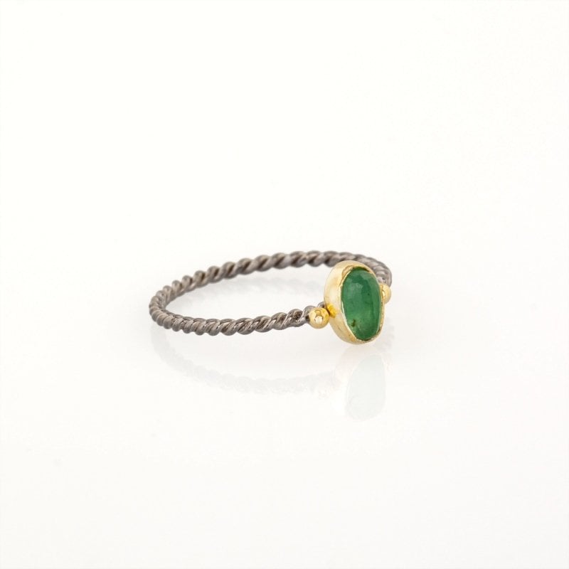 Zümrüt Taşlı El İşi Minimal Gümüş Yüzük